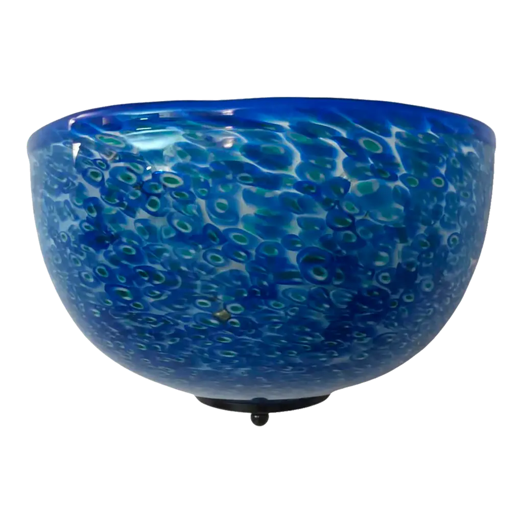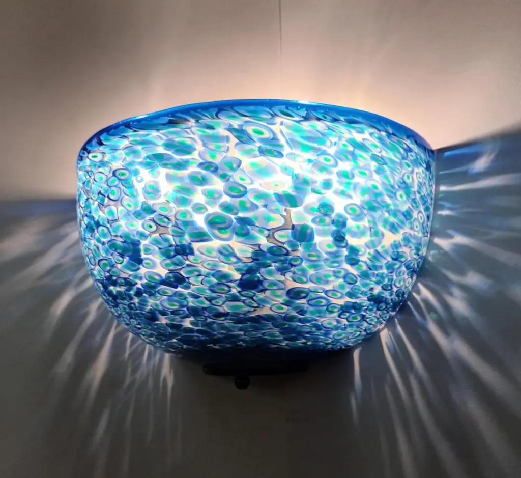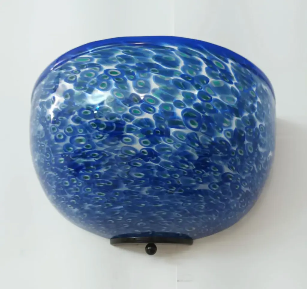 Italian wall lights with blue Murano glasses and melted murrine, designed by Gae Aulenti for Vistosi, made in Italy circa 1960sMeasures: height 7 inches, width 11 inches, depth 5.5 inches2 lights / E26 or E27 type / max 60W each3 available in stock in Italy, price is for each item.