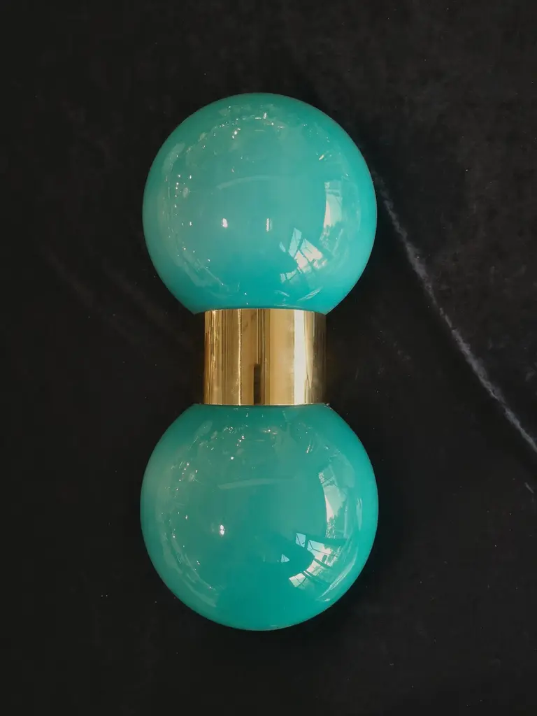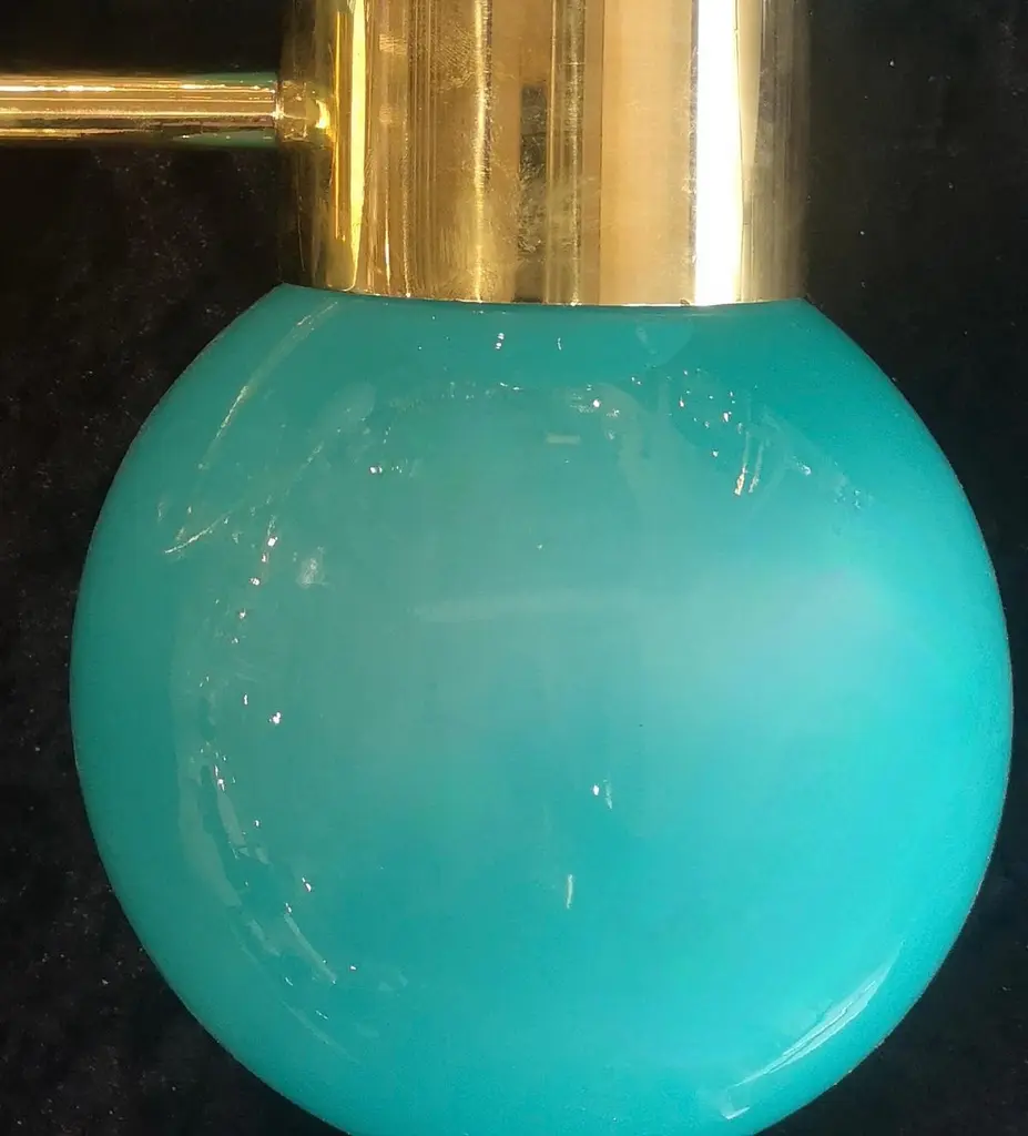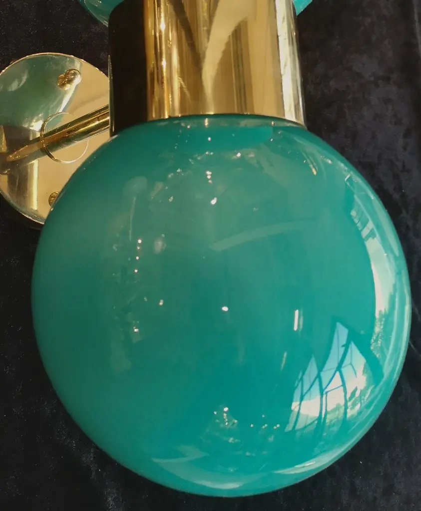 Murano Round Art Glass And Brass Green Midcentury Wall Light And Sconces, 2020