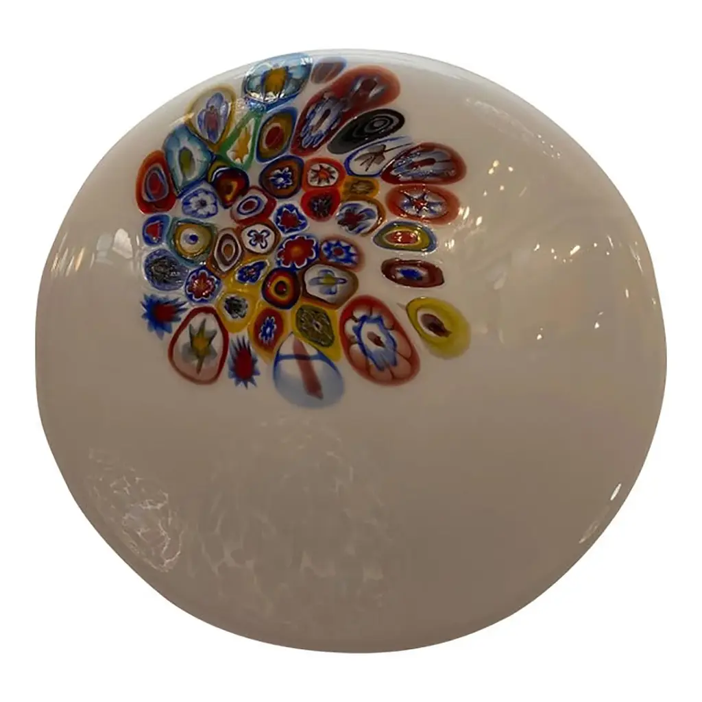 Wall light murrine sphere in murano glass with multicolored murrine wall sconce wall light impressive contemporany murrine multicolors sphere in murano glass with multicolored murrine. Floeal design in very particular and effective movement. Very high italian craftsmanship. Venetian murrine and multicolored millefiori make up this scenographic suspension wall light .these jewels melted together are skillfully blown by skilled murano masters, ambient and shenographic interior light. white/chromed metal frame for 2 bulb. Shipped from italy. d 40cm diametro 40cm h.11cm diameter 15.7" height 4.33" 2 e27 led design ad production made in italy. Made in murano glass. ship from italy, not assembled in a strong packing us plug (up to 110v).