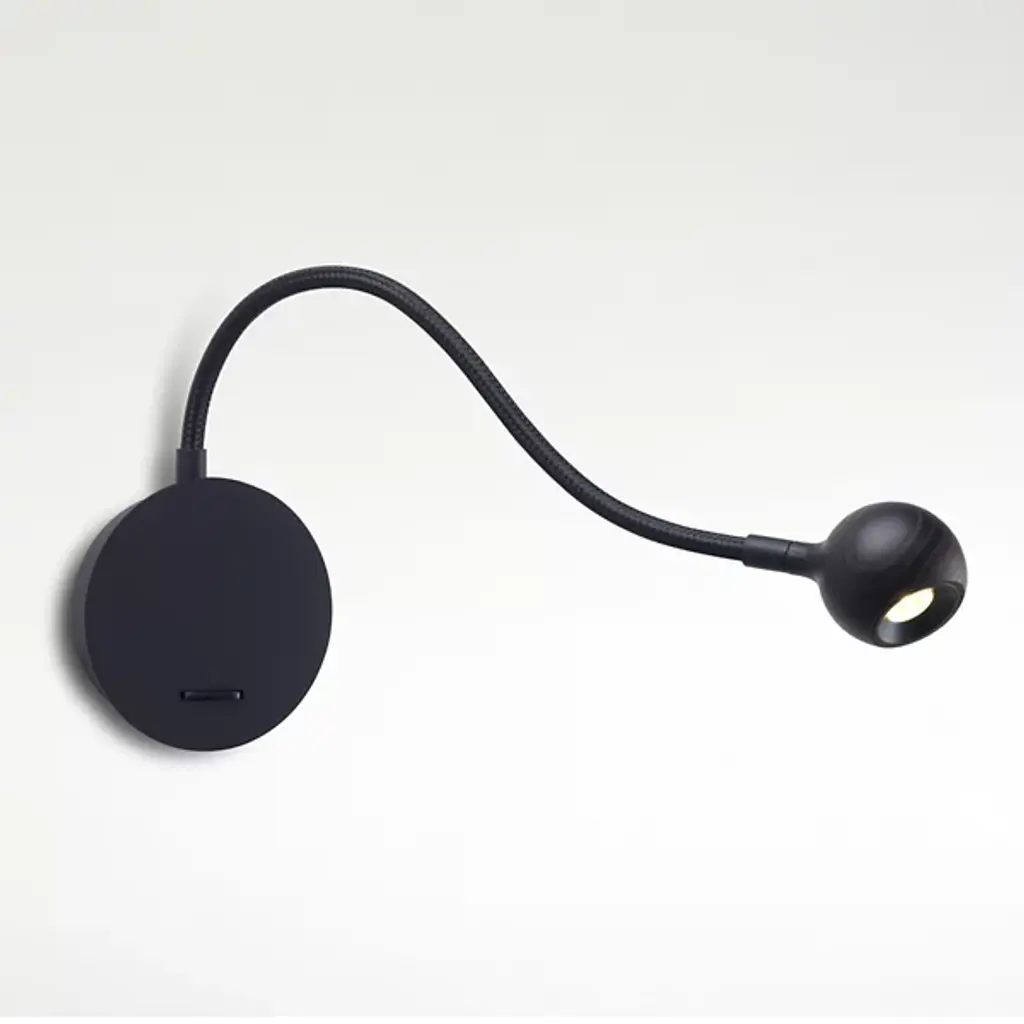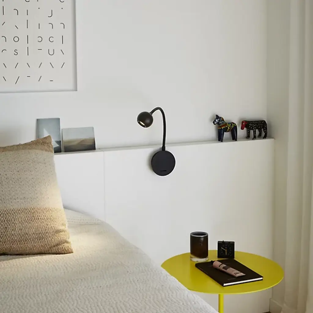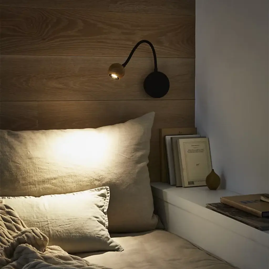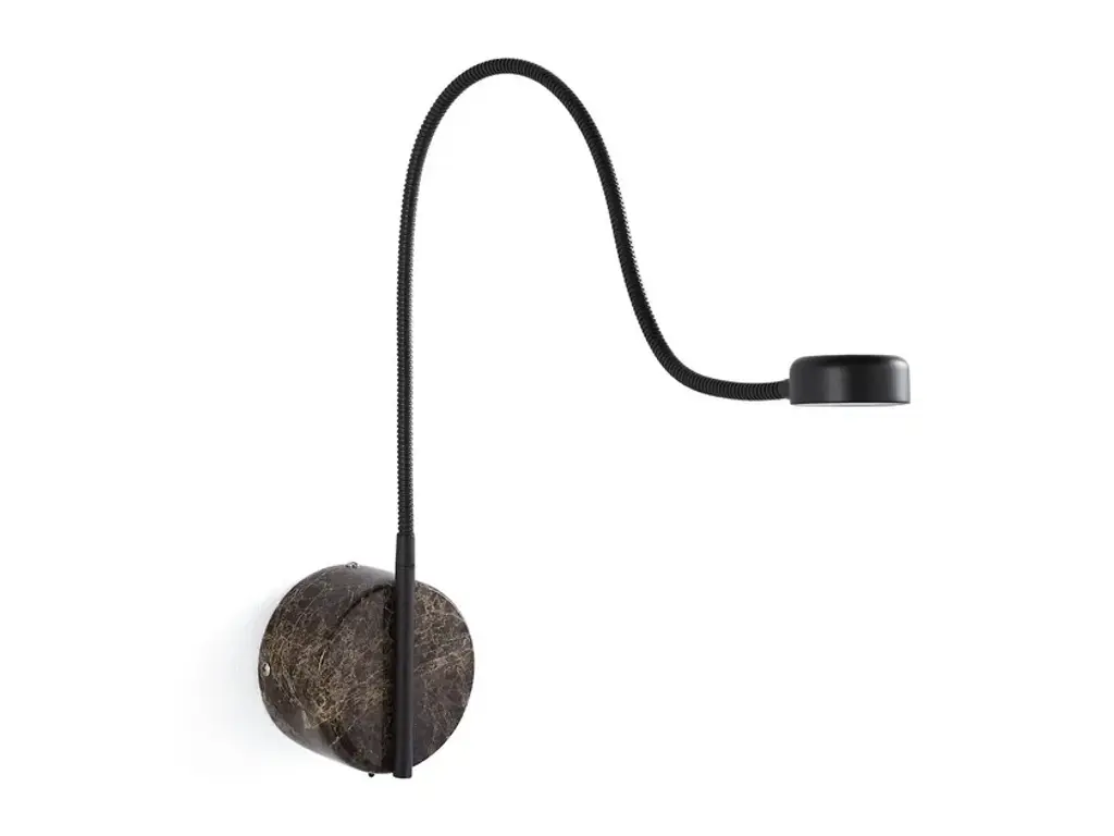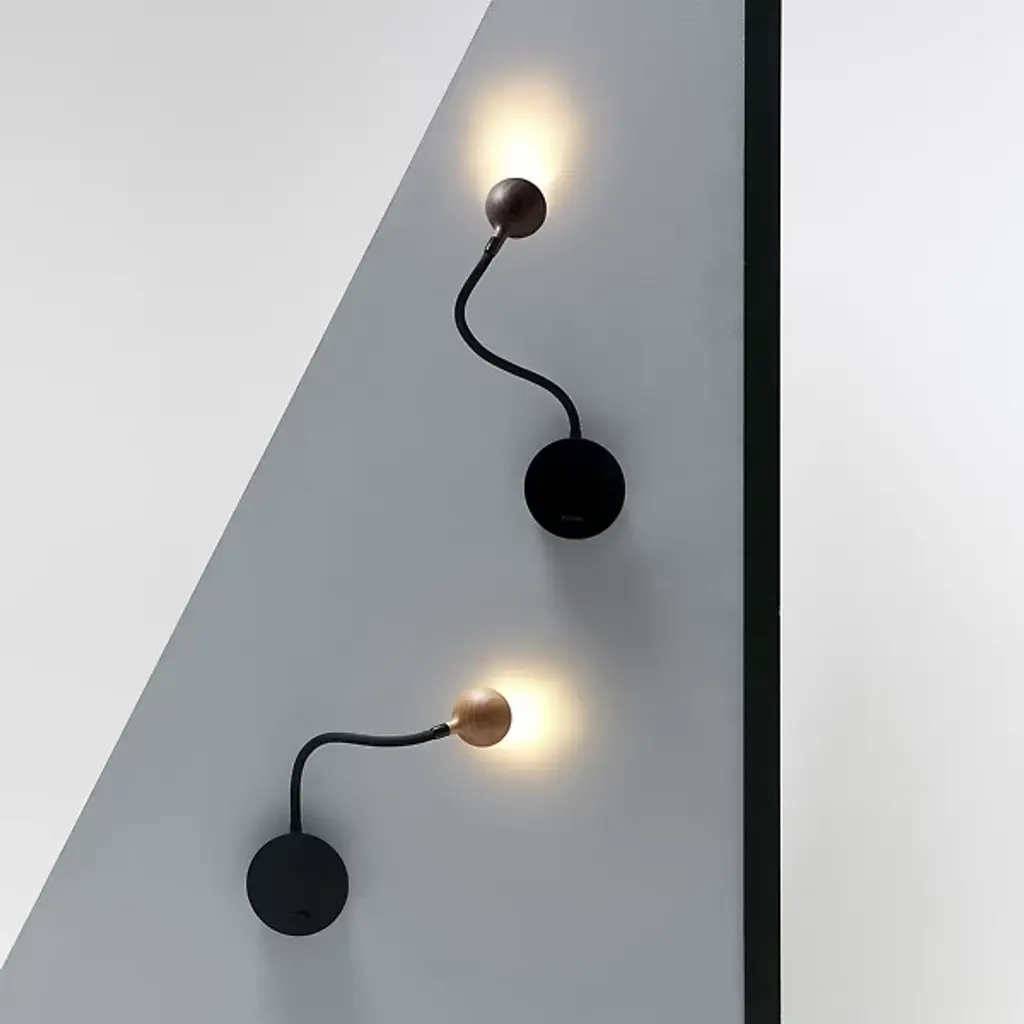 The Marset N. Ocho Wall Sconce provides reading lighting perfect for bedrooms and sitting rooms. Its wooden, spherical lampshade is handcrafted and has a smooth texture, and it features a flexible arm covered in braided fabric. This modern, sensual, easy handling piece was designed by Christophe Mathieu and uses energy efficient, LED technology.