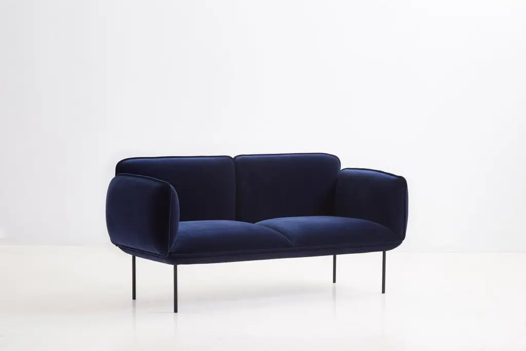 Nakki seater 2 by Mika Tolvanen.Materials: Foam, plywood, elastic belts, memory foam, fabric (Harald 3, 0182).Dimensions: D 78 x W 180 x H 83 cm.Also available in different colours and materials.The founders, Mia and Torben Koed, decided to put their 30 years of experience into a new project. It was time for a change and a new challenge. The challenge was to build an ambitious design brand from the ground up with high-quality materials and great attention to the little details. With a drive to create new originals, the WOUD collection is founded upon the idea to look ahead instead of looking back and share the love for honest design. Therefore, we are eager to discover and develop new ideas whether it being in form, function or choice of material. Studio Tolvanen is a Finnish design office of Julie and Mika Tolvanen. Mika is renowned Finnish Designer. he designs furniture, lighting and interior accessories for both residential and contract use. After graduating from the Royal College of Art in London, he established his own practice. In 2015, together with his spouse Julie Tolvanen, he founded Studio Tolvanen in Helsinki. Julie is originally from America, here she worked as a woodworker for 10 years before she moved to Finland to get a masters in Furniture design. They believe good designs stem from comprehension of materials and a desire to improve how they work. With an aim to make new designs more exciting, Studio Tolvanen designs playful and characteristic products while remaining a quiet presence as they believe design should never be the aspect that makes noise. Mika Tolvanen has been part of the WOUD design team since the beginning with his distinctive Nakki sofa. A series that is designed to add a cheerful personality to any space. The rounded edges and a minimalistic take on classic sofa legs give Nakki its characteristic and lounge feel. Also, the character of his design, Kuppi wall lamp, appears in the minimal yet sculptural expression combined with its functional adjustment feature making it easy to modify the light. Julie Tolvanen has as well contributed to the WOUD collection with a subtle and modern tray, Loop. With its curved wire handle, it is easy to move Loop around - making it a practical serving tray.