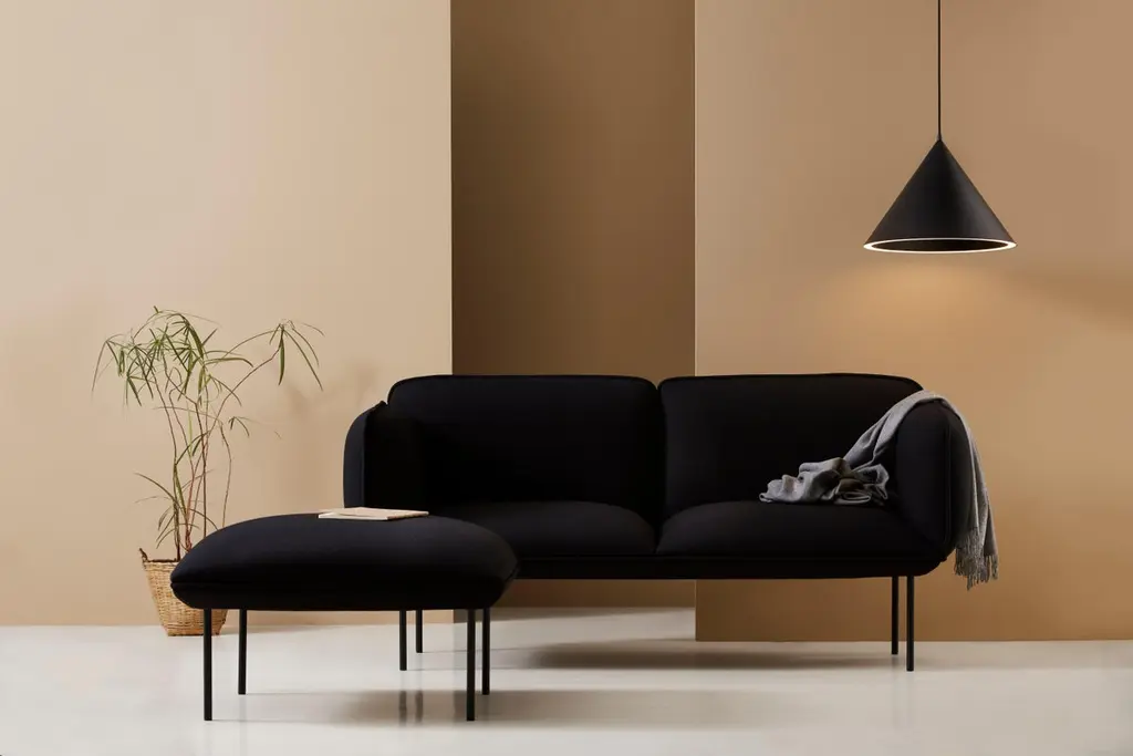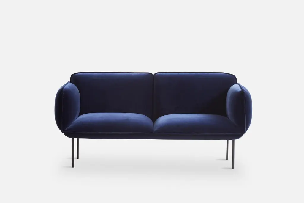 Nakki small seater 2 by Mika TolvanenMaterials: Foam, Plywood, Elastic Belts, Memory Foam, Fabric (Harald 3, 0182)Dimensions: D 75 x W 160 x H 83 cmAlso available in different colors and materials. The founders, Mia and Torben Koed, decided to put their 30 years of experience into a new project. It was time for a change and a new challenge. The challenge was to build an ambitious design brand from the ground up with high-quality materials and great attention to the little details. With a drive to create new originals, the WOUD collection is founded upon the idea to look ahead instead of looking back and share the love for honest design. Therefore, we are eager to discover and develop new ideas whether it being in form, function or choice of material. Studio Tolvanen is a Finnish design office of Julie and Mika Tolvanen. Mika is renowned Finnish Designer. he designs furniture, lighting and interior accessories for both residential and contract use. After graduating from the Royal College of Art in London, he established his own practice. In 2015, together with his spouse Julie Tolvanen, he founded Studio Tolvanen in Helsinki. Julie is originally from America, here she worked as a woodworker for 10 years before she moved to Finland to get a masters in Furniture design. They believe good designs stem from comprehension of materials and a desire to improve how they work. With an aim to make new designs more exciting, Studio Tolvanen designs playful and characteristic products while remaining a quiet presence as they believe design should never be the aspect that makes noise. Mika Tolvanen has been part of the WOUD design team since the beginning with his distinctive Nakki sofa. A series that is designed to add a cheerful personality to any space. The rounded edges and a minimalistic take on classic sofa legs give Nakki its characteristic and lounge feel. Also, the character of his design, Kuppi wall lamp, appears in the minimal yet sculptural expression combined with its functional adjustment feature making it easy to modify the light. Julie Tolvanen has as well contributed to the WOUD collection with a subtle and modern tray, Loop. With its curved wire handle, it is easy to move Loop around - making it a practical serving tray.