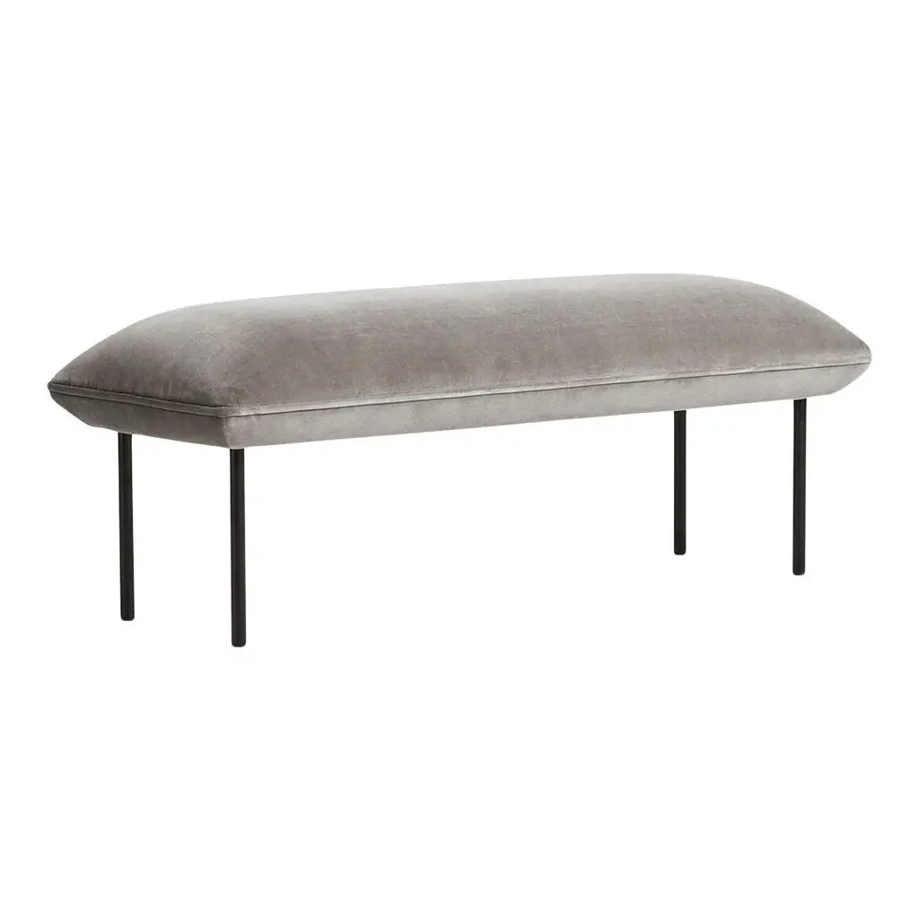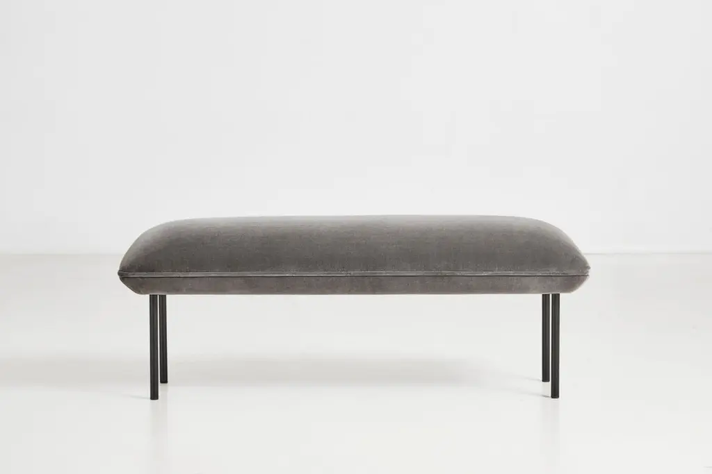 Nakki tall bench by Mika TolvaneMaterials: Foam, plywood, elastic belts, fabric (Harald 3, 0143)Dimensions: D 45 x W 120 x H 51 cmAlso available in different colors and materials.The founders, Mia and Torben Koed, decided to put their 30 years of experience into a new project. It was time for a change and a new challenge. The challenge was to build an ambitious design brand from the ground up with high-quality materials and great attention to the little details. With a drive to create new originals, the WOUD collection is founded upon the idea to look ahead instead of looking back and share the love for honest design. Therefore, we are eager to discover and develop new ideas whether it being in form, function or choice of material. Studio Tolvanen is a Finnish design office of Julie and Mika Tolvanen. Mika is renowned Finnish Designer. he designs furniture, lighting and interior accessories for both residential and contract use. After graduating from the Royal College of Art in London, he established his own practice. In 2015, together with his spouse Julie Tolvanen, he founded Studio Tolvanen in Helsinki. Julie is originally from America, here she worked as a woodworker for 10 years before she moved to Finland to get a masters in Furniture design. They believe good designs stem from comprehension of materials and a desire to improve how they work. With an aim to make new designs more exciting, Studio Tolvanen designs playful and characteristic products while remaining a quiet presence as they believe design should never be the aspect that makes noise. Mika Tolvanen has been part of the WOUD design team since the beginning with his distinctive Nakki sofa. A series that is designed to add a cheerful personality to any space. The rounded edges and a minimalistic take on classic sofa legs give Nakki its characteristic and lounge feel. Also, the character of his design, Kuppi wall lamp, appears in the minimal yet sculptural expression combined with its functional adjustment feature making it easy to modify the light. Julie Tolvanen has as well contributed to the WOUD collection with a subtle and modern tray, Loop. With its curved wire handle, it is easy to move Loop around - making it a practical serving tray.