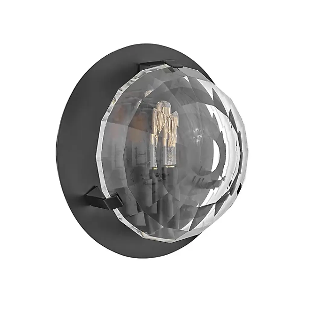 The Nala Wall Sconce from Fredrick Ramond showcases a traditional silhouette with intricate detailing. Its circular steel frame is encased by multi-faceted optic-crystal lenses, securely held with cast clips for a polished finish. The concealed mounting hardware is designed for a seamless look and ensures a clean presentation. With its classic design and timeless appeal, this sconce adds refined elegance to traditional interiors, providing both decorative charm and functional illumination in hallways, living spaces, or entryways.
