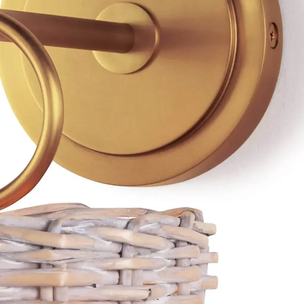 Add an elegant accompaniment to your walls and hallways with the Nantucket Wall Sconce from Regina Andrew. A clever coastal fixture, it starts simply by extending a short steel rod from a stepped disc wall plate, dropping in turn to a vertical ring that suspends the fixture’s single, downward-facing socket. A cylindrical shade made from hand-woven rattan wraps the lamping from the sides, drawing the eye as it gentles direct glare from the sides.
