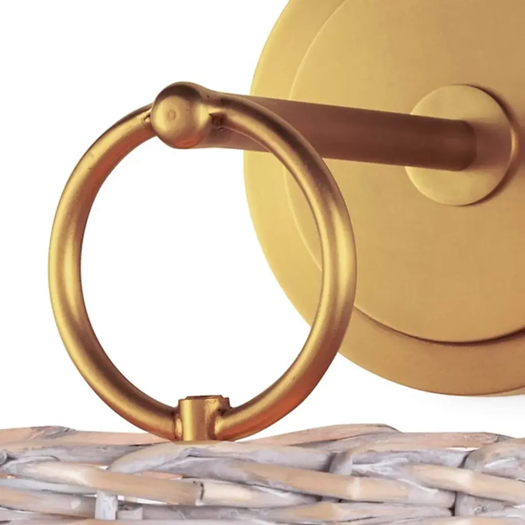 Add an elegant accompaniment to your walls and hallways with the Nantucket Wall Sconce from Regina Andrew. A clever coastal fixture, it starts simply by extending a short steel rod from a stepped disc wall plate, dropping in turn to a vertical ring that suspends the fixture’s single, downward-facing socket. A cylindrical shade made from hand-woven rattan wraps the lamping from the sides, drawing the eye as it gentles direct glare from the sides.