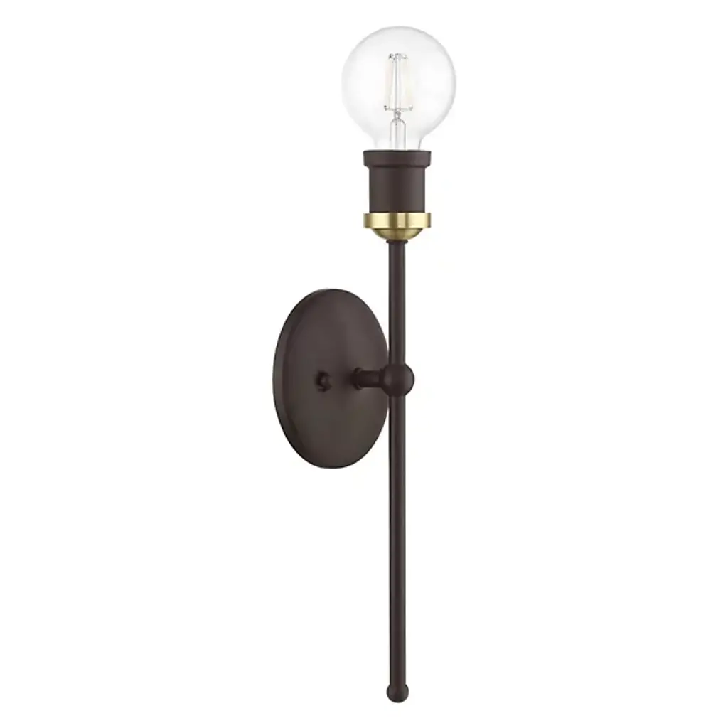 Bring a look of prominence to your home décor with the Naomi Wall Sconce by Alder & Ore. Fine metal has been meticulously worked into the dorm of a rod, creating a distinguished staff-like appearance. This rod boasts a discreetly rounded base and provides foundational support for an incandescent bulb. From this bulb splays vibrant light that disperses throughout your environment with ease. Your sconce remains securely held in place through attachment to a backplate at your wall.