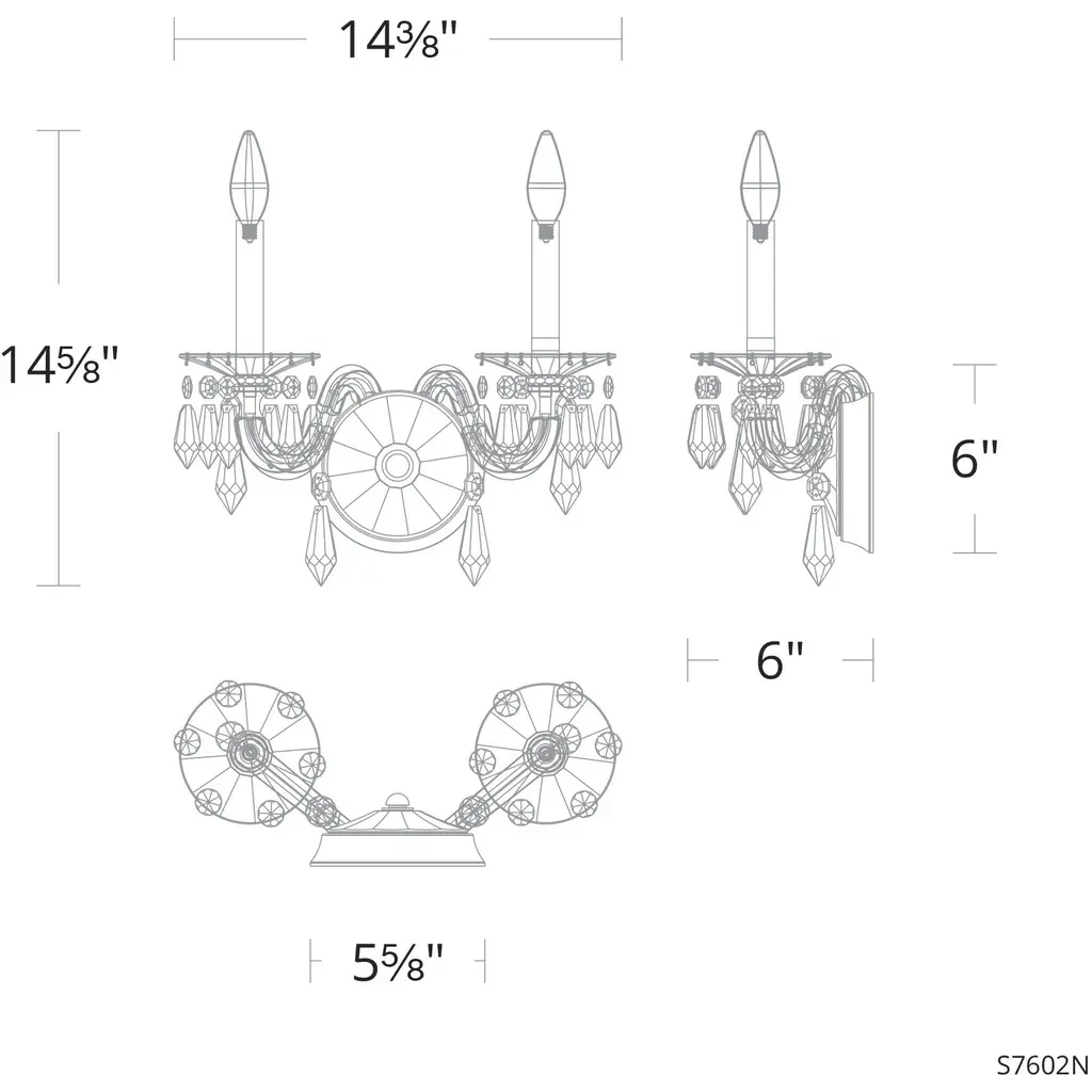 Napoli 2 Light 6 Inch Heirloom Gold Wall Sconce Wall Light, Schonbek Signature