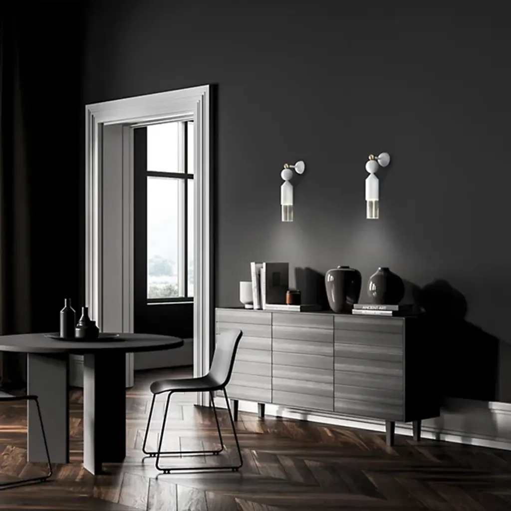 Provide your interior spaces with a welcome touch of opulent elegance with the striking and stylish Nappe N4 Wall Sconce from Masiero. Inspired by the finely-threaded tassels of Venetian textile work, it was designed by Marco Zito and made in Italy, using a body of brushed metal and an upper cap of solid brass extending from a rod attached to a dome wall mount to provide a unique look. The conical metal shade housing descends from a sleek spherical accent, concealing the direct glare of integrated LED lamping at eye level. Finally, a curtain of robust pyrex glass rods forms the stylized fringe of the tassel, taking on reflected light and a life of their own.