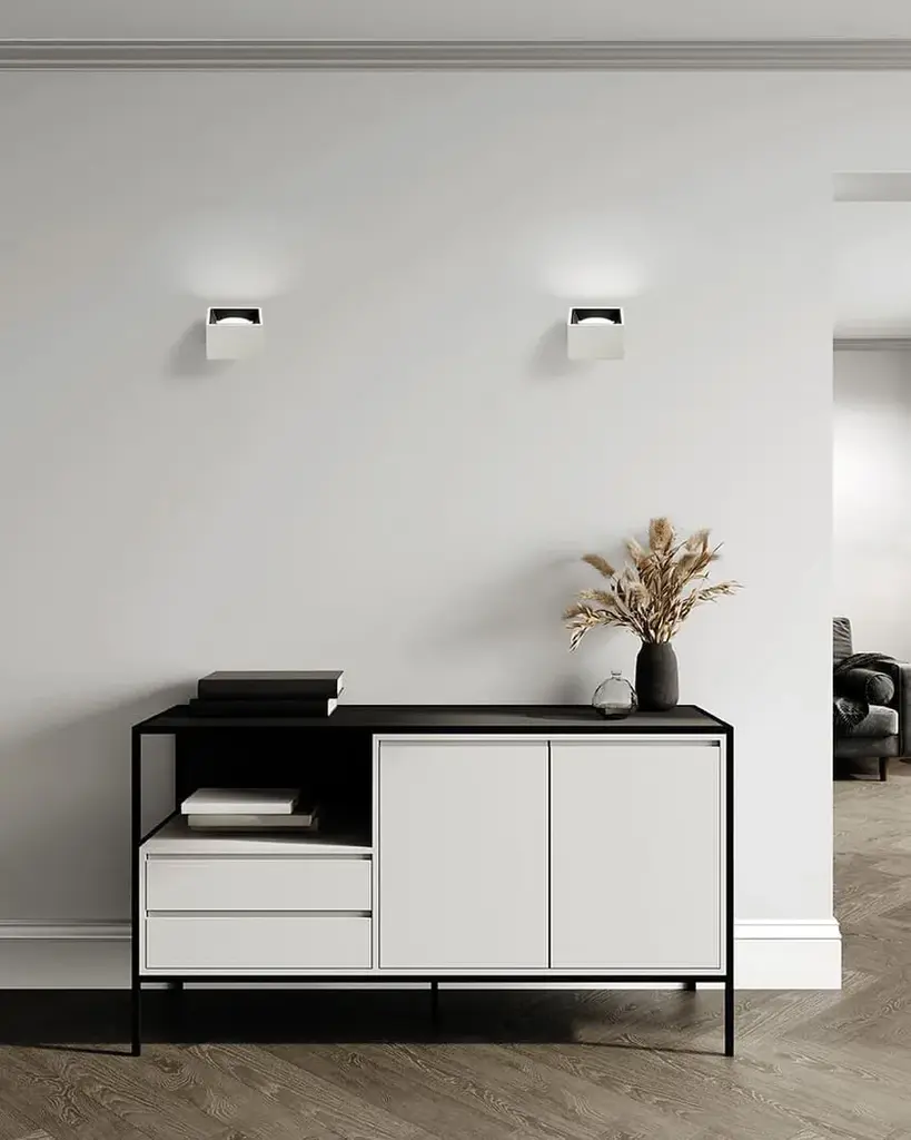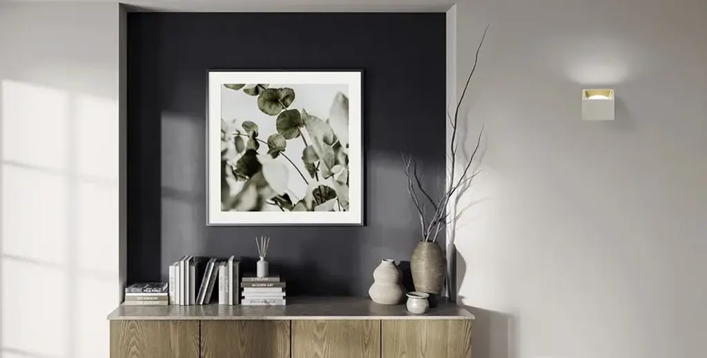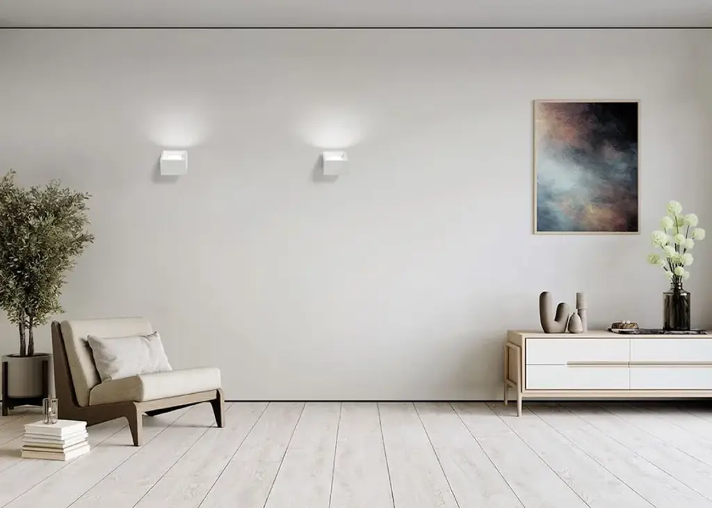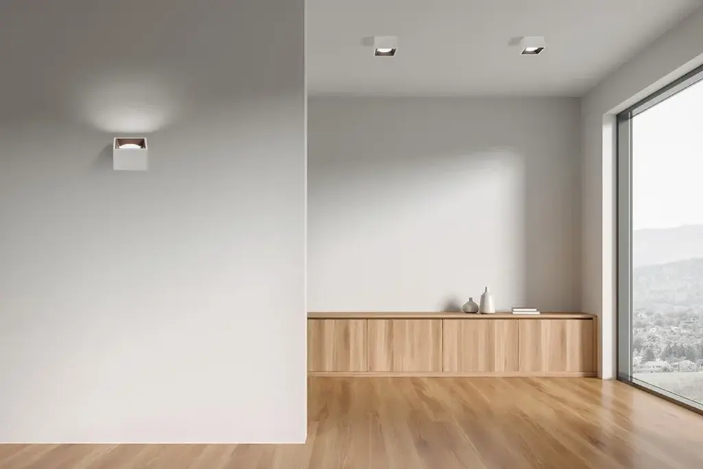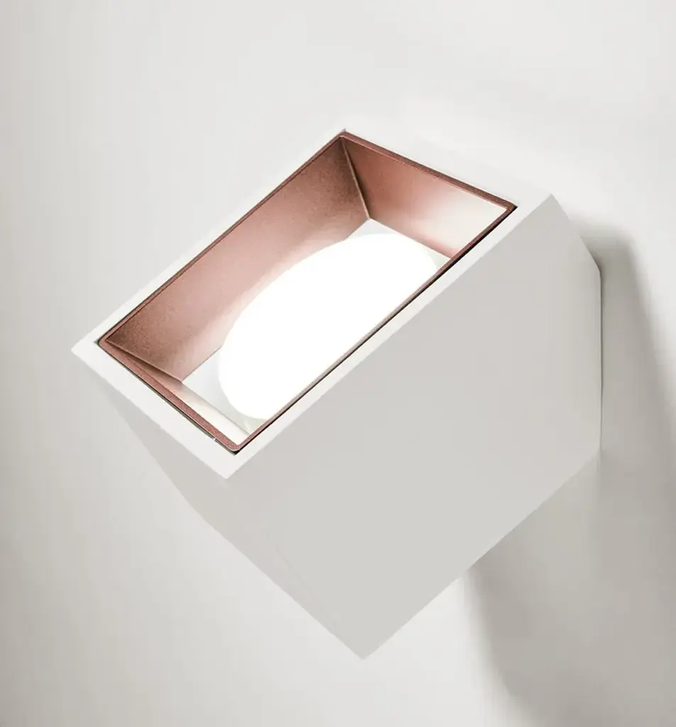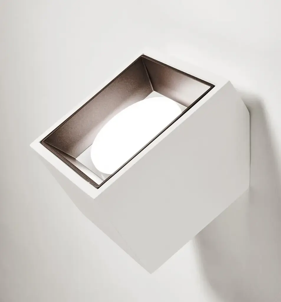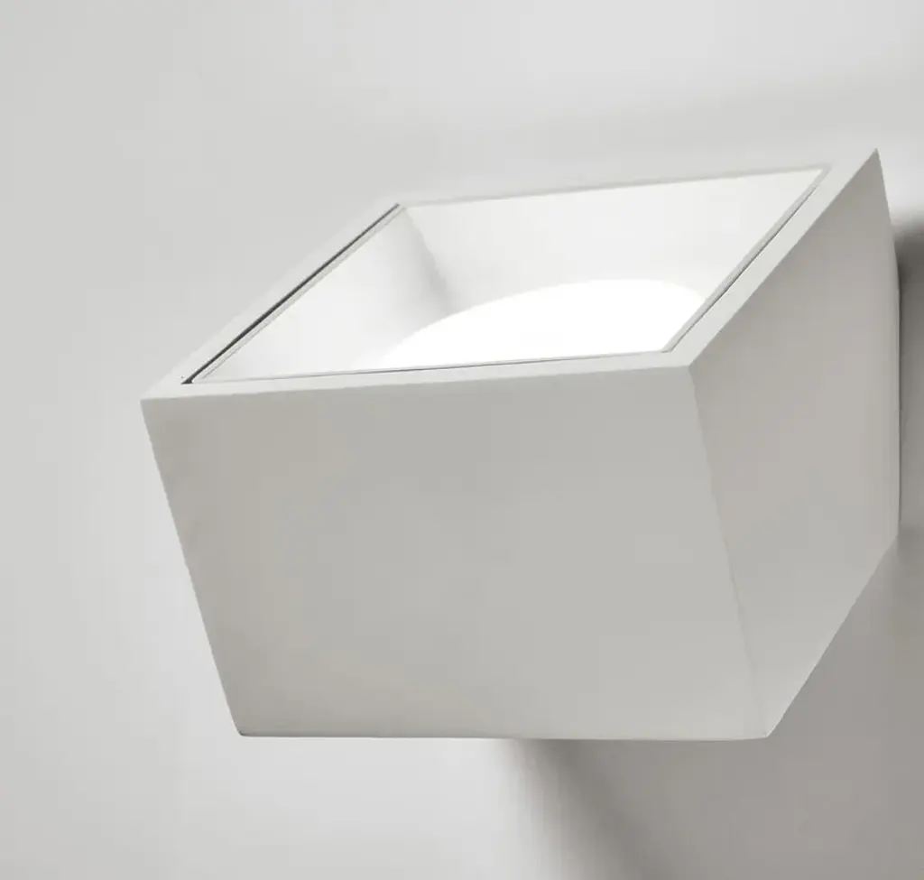 Nasso Quadrata is a plaster wall lamp for indirect lighting. Painted aluminum ring available in black, matt white, bronze, brushed brass or brushed copper. Equipped with GX53 lamp holder.