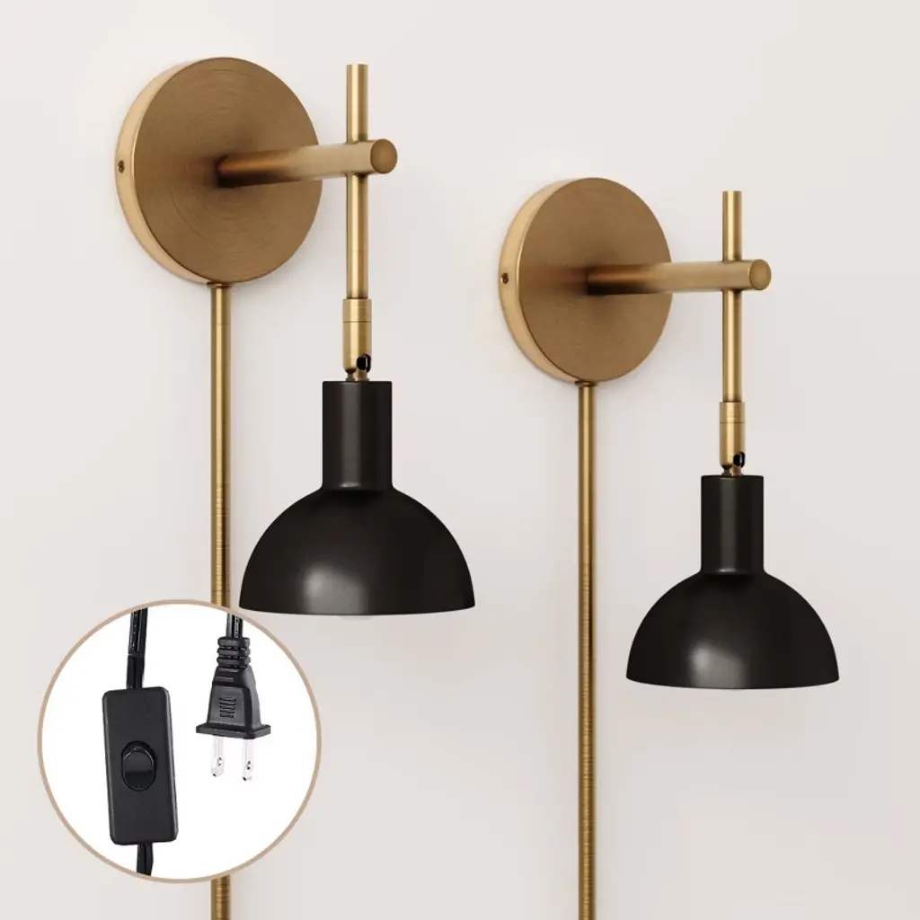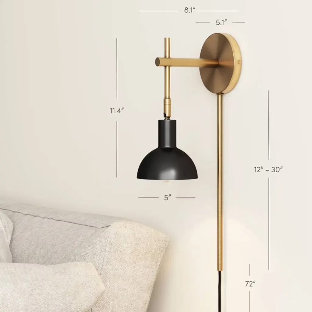 Meet Tamlin, our plug-in wall light perfect for reading nooks, living rooms, and bedsides. Extending from a circular wall plate is an elegant brass metal arm with a matte black round bell shade. The wall mounted bedside lamp has an articulating shade which allows you to direct the light left or right and is dimmer compatible, for those nights you can't put your book down. This wall light is a must-have for small spaces, apartments, and townhomes and can be placed in your favorite spot without worry thanks to the included cord cover. Or ditch the plug-in and take it to the next level by getting this light professionally hardwired by an electrician. Nathan James is the furniture company built for this generation. You don't need to spend a fortune to get quality design-first furniture and when we say easy assembly, we mean it. This product is not recommended for commercial use.Materials:- Vintage Brass Metal Assembly Must-Haves:- Packaging carton as working surface - Phillips head screwdriver