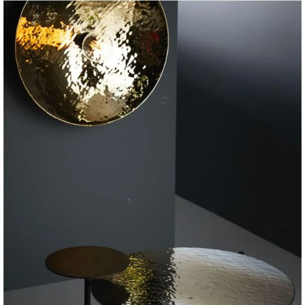 Nebbia wall light, gold & large by RADARDesign: Bastien TaillardMaterials: Metal, glassDimensions: Depth 15 x Diameter 70 cmAlso available in different colors: silver, bronze, Iris. and materials: Solid oak.All our lamps can be wired according to each country. If sold to the USA it will be wired for the USA for instance.Elegant, timeless, understated. The RADAR collection allows you to take a welcome break from the teeming world of objects and styles, and proposes practical, beautifully designed products made by aesthetes for aesthetes.Francesca Bertini, Milanese born in the Mecca of world design, married to a Neapolitan with whom she lives in France. First tempted by a professional sports career in alpine skiing, she decided to invest in another challenge, her diploma in management of international companies at Università Bocconi in Milan.From marketing for a large editorial group to international and institutional relations for an important think tank European linked to the Italian Ministry of Foreign Affairs, she moved to France and put her experience at the service of the commercial management of a luxury decoration brand. Bastien Taillard was born into a family of interior decorators and designers where creativity was a driving force.After his training at the ENSCI (National School of Industrial Creation, Paris) this tireless traveler settles temporarily in Milan where he meets several of his future mentors, these iconic designers, pioneers and innovators. It is his own path and style that he develops according to his experiences and his encounters.