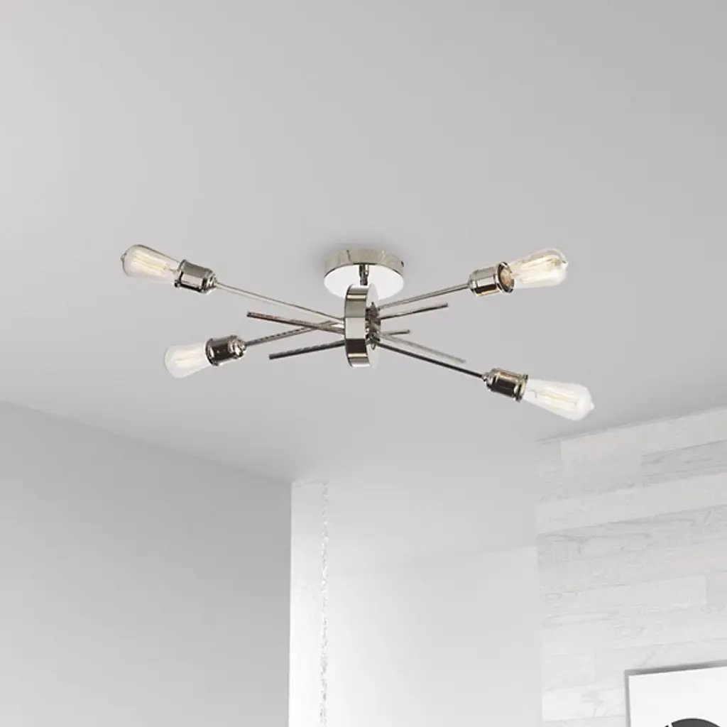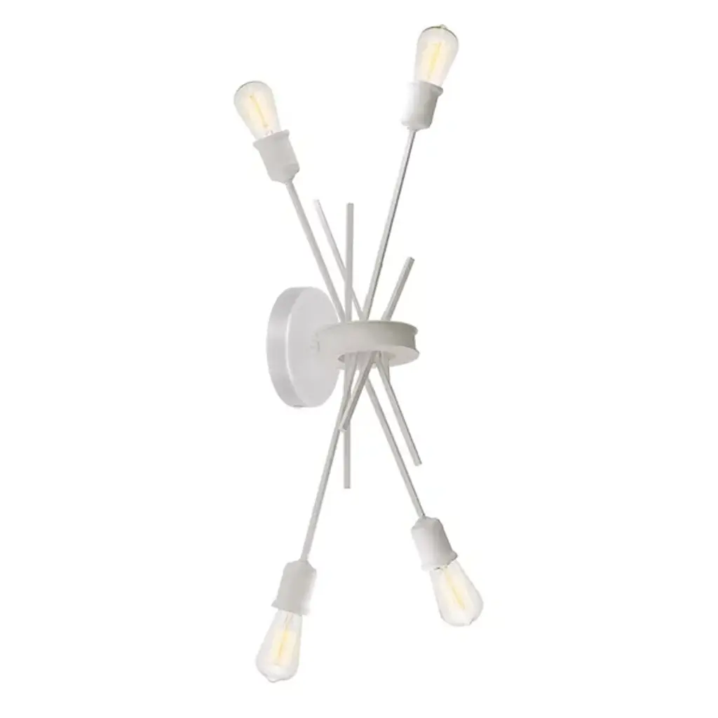 Dynamic in silhouette like a modern sculpture. The Nebraska Wall Sconce from Dainolite is a hand-arranged piece bringing drama with or without the lights on. It sits tightly to your wall with a compact metal backplate. A metal ring in front acts as a cinching motif as it holds together the linear rods. Double-sided stems mingle with ornamental ones in a diagonal movement to create an organic-inspired composition. Accentuate the bare-bulb design with a group of vintage-style incandescent bulbs on each end of the stems. Together they produce a tall ambient glow while silhouetting its linear figure.