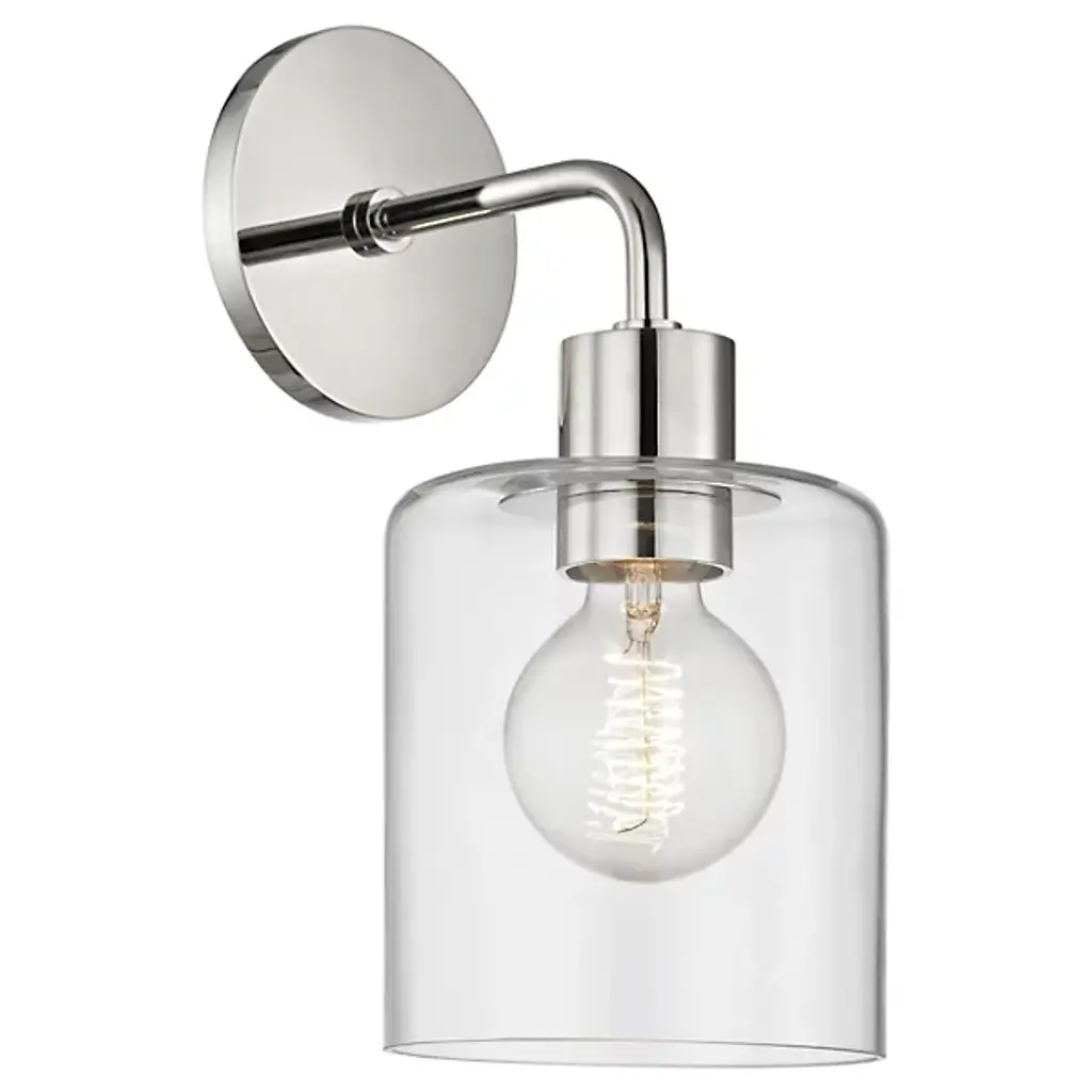 The Neko Wall Sconce by Mitzi invites the industrial feel of glass-with-metal into your favorite spaces. A classic design, it features a round wall plate and single downward arm wrapped in a clear Glass jar shade. Whether adding a decorative lighting layer to a modern farmhouse kitchen or illuminating artwork, this wall light complements a wide range of styles and settings.