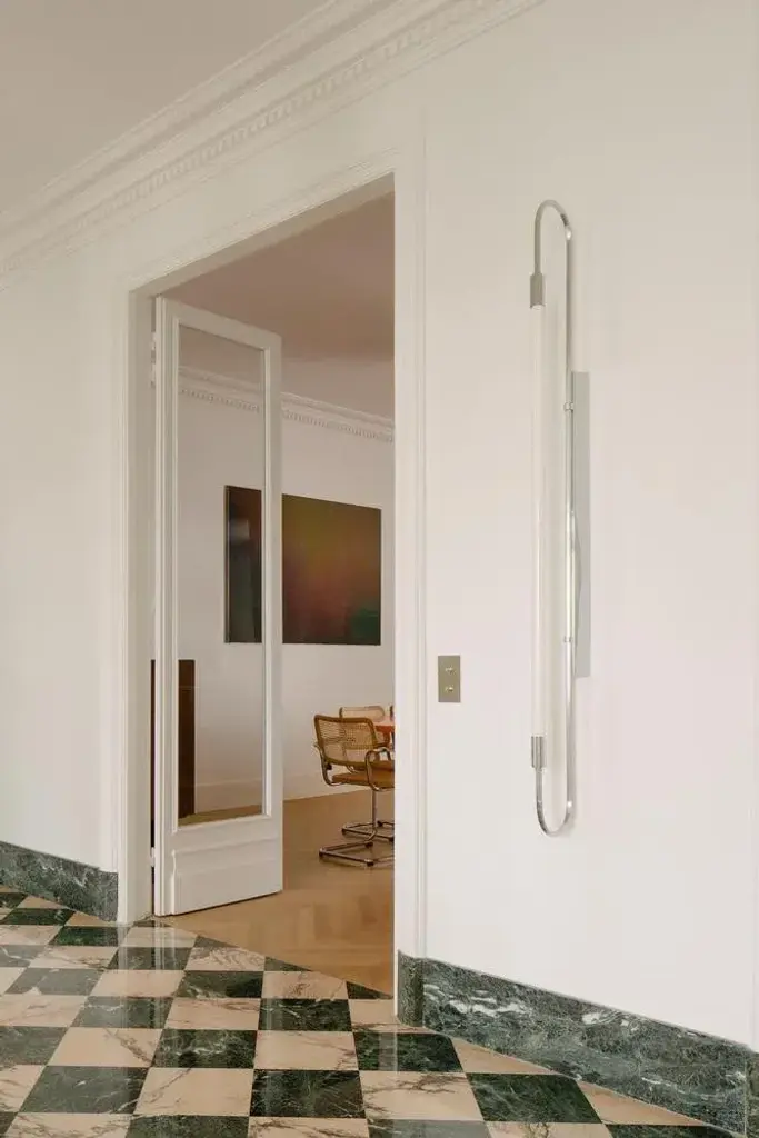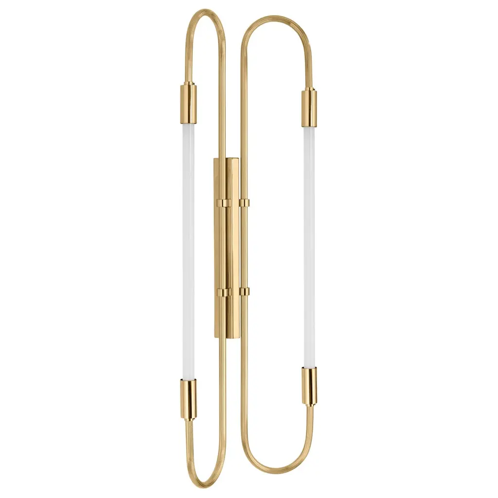Wall lamp neon double 170 by magic circus editions dimensions: h. 170 cm, w. 37 cm, d. 11 cm materials: fluted brass tube and glass. Available finishes: brass (lacquered polished brass, unlacquered polished brass, brushed brass) or nickel (lacquered polished nickel, brushed nickel). Available colors for tubes: black, red brick, red wine, green pine, blue ink. All our lamps can be wired according to each country. If sold to the usa, it will be wired for the usa, for instance. up to 250v (europe/uk standard).