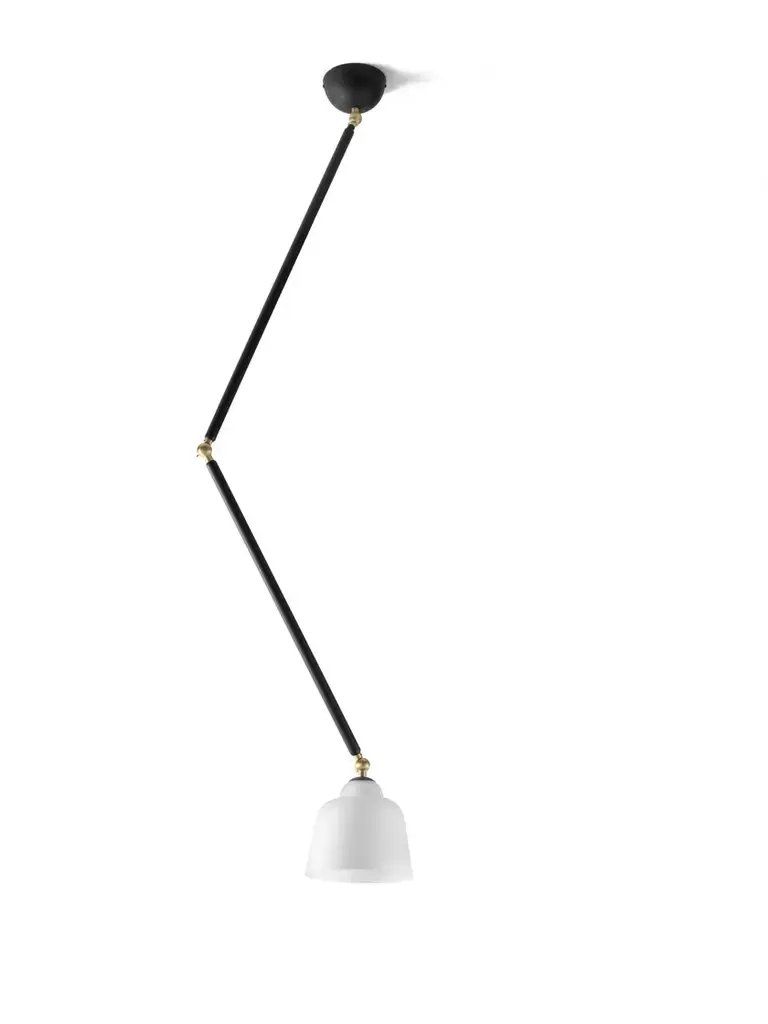 Neoretro is a ceiling or wall lamp with black soft touch powder coated metal frame and milky white blown glass diffuser. The brass joints allow you to raise or lower the lamp according to your preferences.Technical information:- Light source: E27- Power: 1 x max 40w