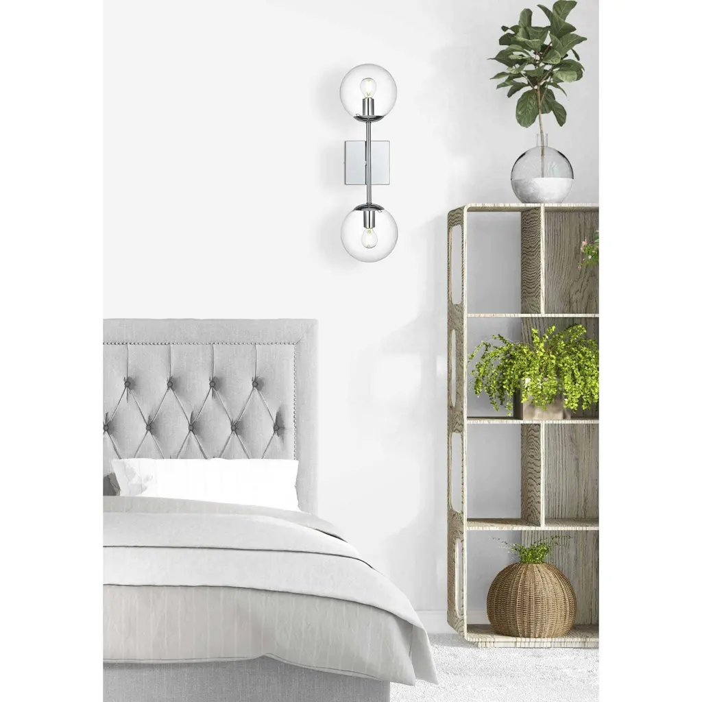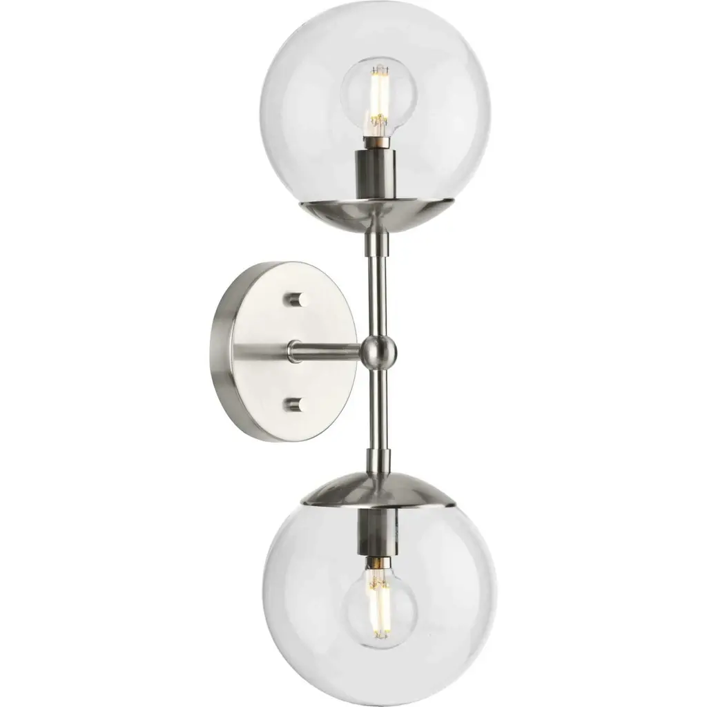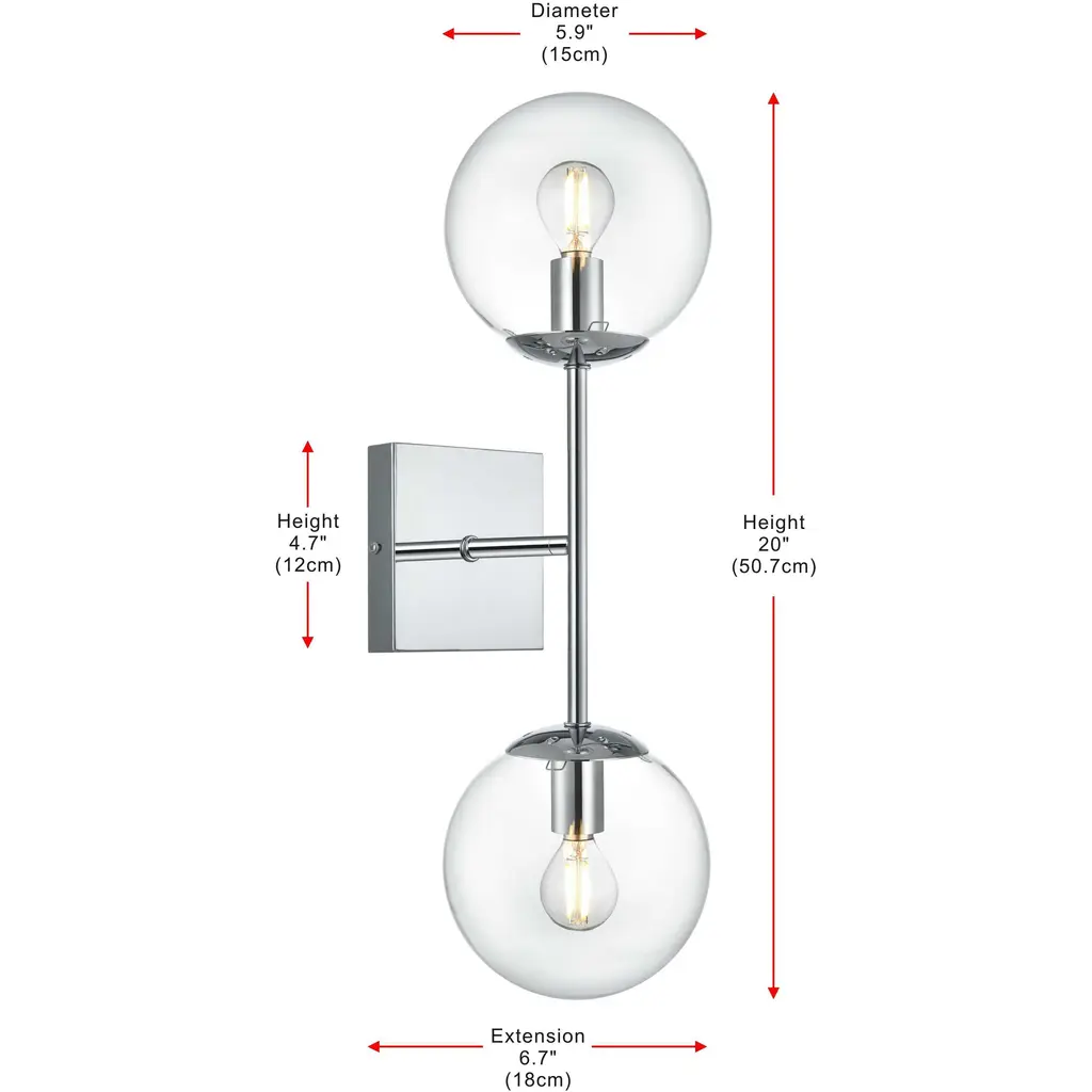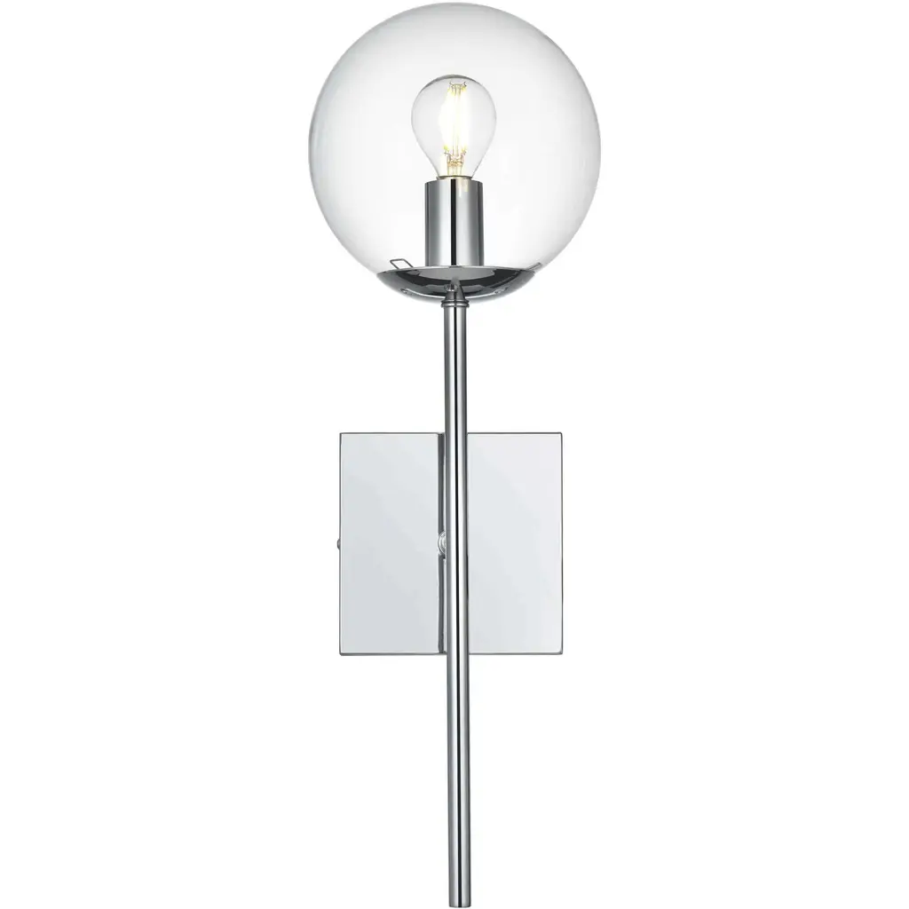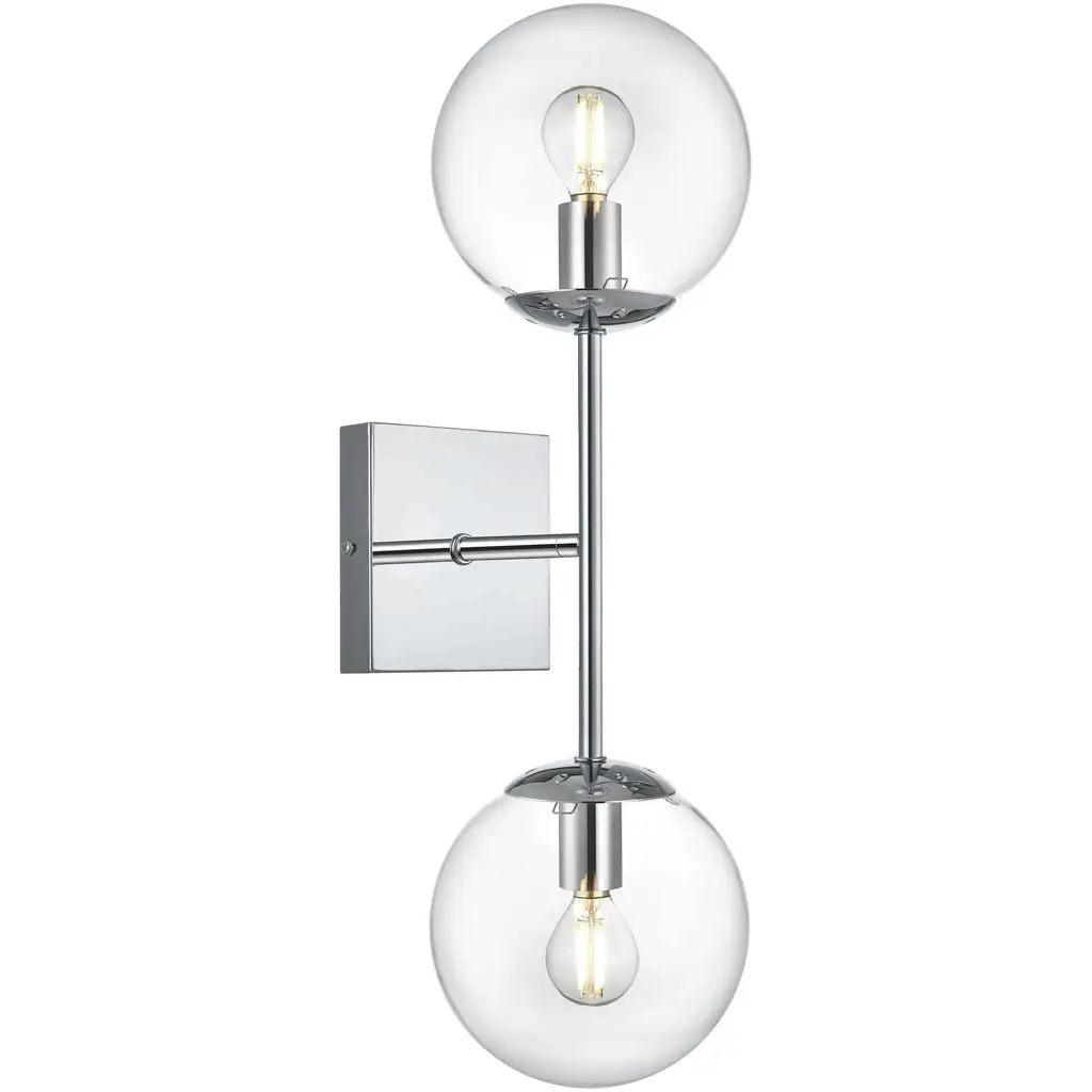 The Neri Collection wall sconce is a distinctive light that will pop in your room. The globe shade and sleek straight arm creates a clean form. The two bulbs allow themselves to brighten up the room in both directions. Available in a satin gold, chrome, black and/or brass finish, and a clear shade, let this wall lamp illuminate your room. You can choose whether to have one or two lights. This product is dimmable and requires one or two E12 lamps. Light bulbs not included.