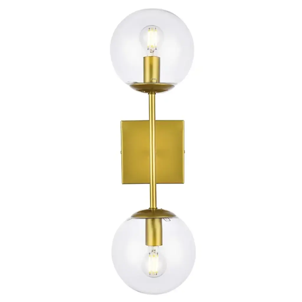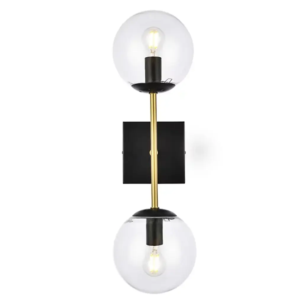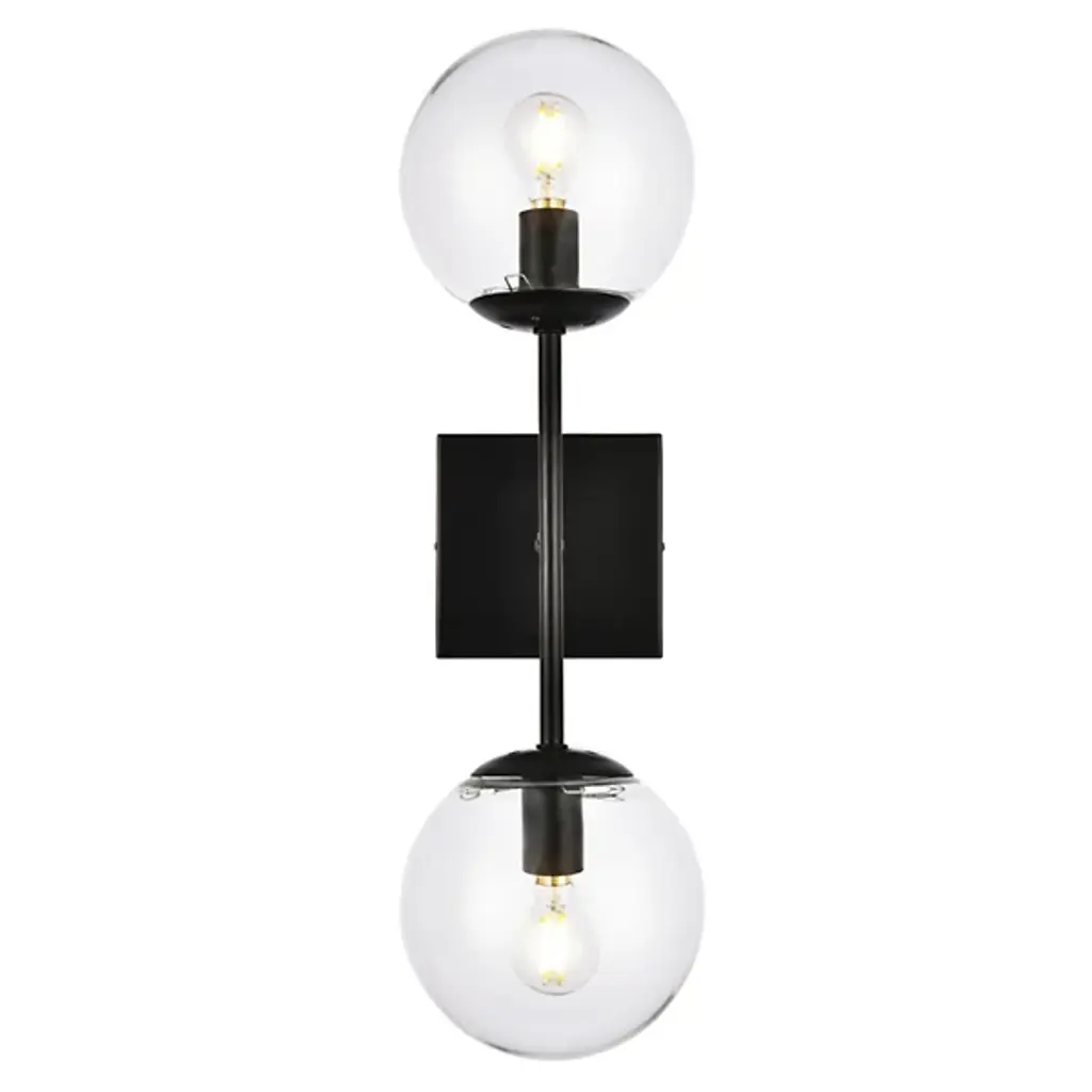 The Neri 2 Light Wall Sconce from Elegant Lighting is a symphony of spheres and linear elements. Two orbs of light, nestled within clear glass globes, are poised on a slender arm that extends from a minimalist backplate. This fixture's versatility allows it to serve as both an up and downlight, shaping ambiance with precision. In intimate and grand spaces, this sconce demonstrates the power of simplicity, proving that true sophistication lies in restraint and perfect proportions.