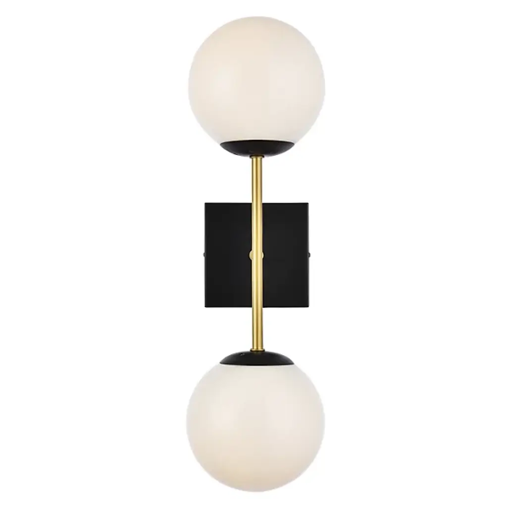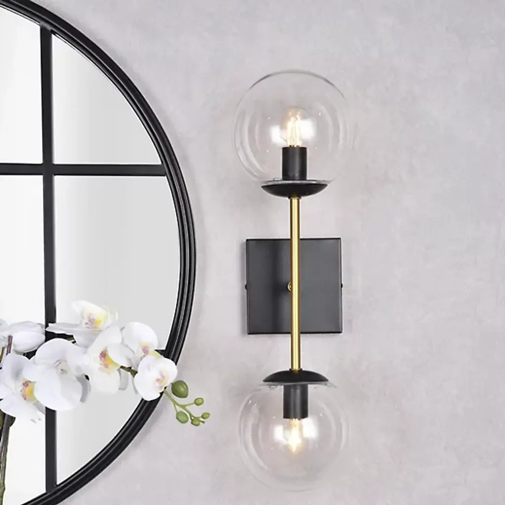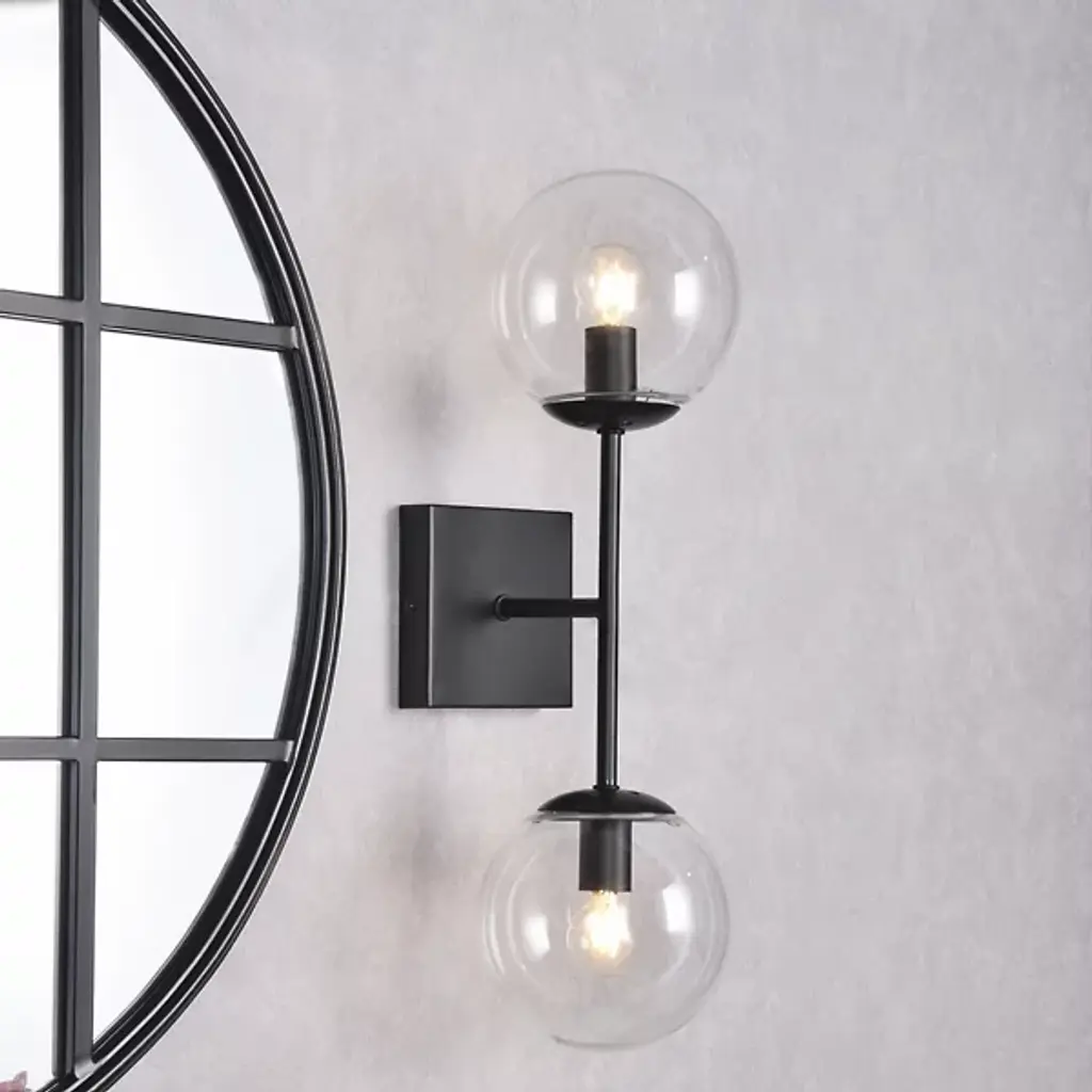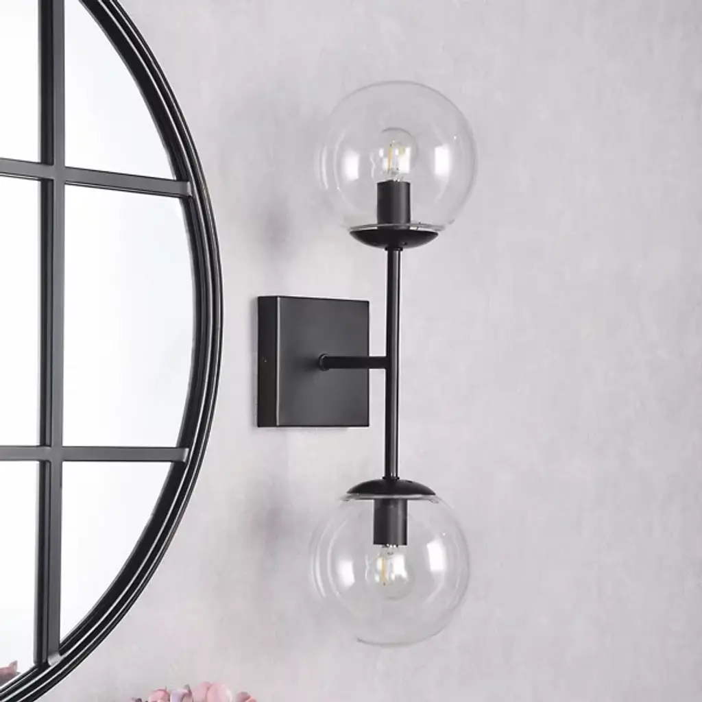 The Neri 2 Light Wall Sconce from Elegant Lighting is a symphony of spheres and linear elements. Two orbs of light, nestled within clear glass globes, are poised on a slender arm that extends from a minimalist backplate. This fixture's versatility allows it to serve as both an up and downlight, shaping ambiance with precision. In intimate and grand spaces, this sconce demonstrates the power of simplicity, proving that true sophistication lies in restraint and perfect proportions.