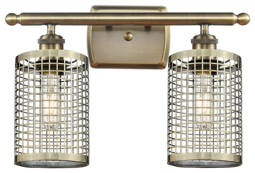 INNOVATIONS 516-2W-BAB-M18-BK Nestbrook 2 16 inch Bath Vanity Light Black Antique Brass. Style: Industrial, Farmhouse, Restoration-Vintage. Collection Name: Downtown Urban. Metal Finish(Body): Black Antique Brass. Metal Finish(Shade): Matte Black. Metal Finish(Canopy/Backplate): Matte Black. Material: Steel, Cast Brass. Dimension(in): 11(H) x 14.75(W) x 6.5(Ext). Bulb: (2)6W LED(Included). Voltage: 120. Dimmable: Yes. Color Temperature (Kelvin): 2700. Color Rendering Index (CRI): 90. Lumens: 750. Life Expectancy (Hours): 15000. Shade Shape: Cylinder. Glass or Metal Shade Color: Matte Black. Shade Material: Metal. Metal Shade Description: Matte Black Nestbrook. Shade Dimension(in): 4.75(W) x 7(H). Fitter Measurement (Glass Or Metal Shade Fitter Size): Threaded socket ring with a 1.625 inch opening. ADA Compliant: No. California Proposition 65 Warning Required: Yes. UL/ETL Certification Type: Damp Location.