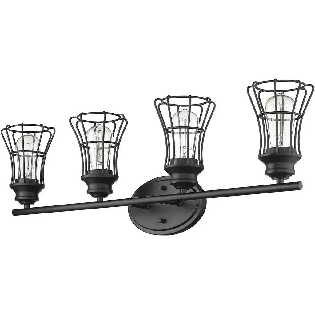 INNOVATIONS 516-4W-BAB-M18-BK Nestbrook 4 36 inch Bath Vanity Light Black Antique Brass. Style: Industrial, Farmhouse, Restoration-Vintage. Collection Name: Downtown Urban. Metal Finish(Body): Black Antique Brass. Metal Finish(Shade): Matte Black. Metal Finish(Canopy/Backplate): Matte Black. Material: Steel, Cast Brass. Dimension(in): 11(H) x 34.75(W) x 6.5(Ext). Bulb: (4)6W LED(Included). Voltage: 120. Dimmable: Yes. Color Temperature (Kelvin): 2700. Color Rendering Index (CRI): 90. Lumens: 750. Life Expectancy (Hours): 15000. Shade Shape: Cylinder. Glass or Metal Shade Color: Matte Black. Shade Material: Metal. Metal Shade Description: Matte Black Nestbrook. Shade Dimension(in): 4.75(W) x 7(H). Fitter Measurement (Glass Or Metal Shade Fitter Size): Threaded socket ring with a 1.625 inch opening. ADA Compliant: No. California Proposition 65 Warning Required: Yes. UL/ETL Certification Type: Damp Location.