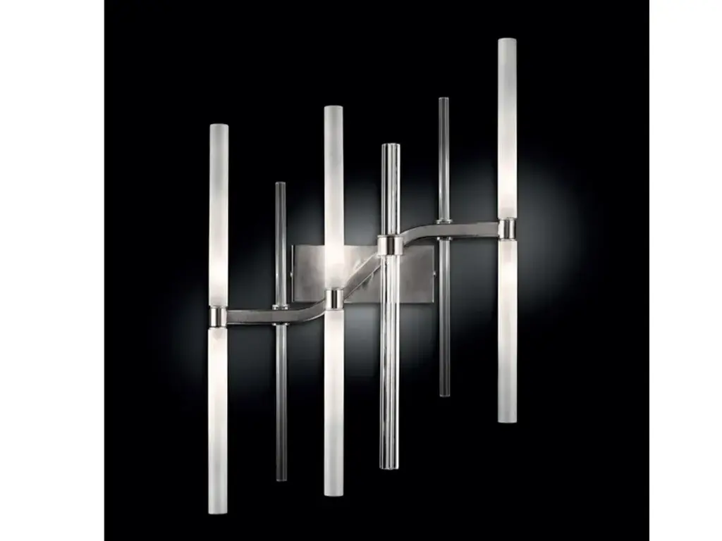 Neva is a wall lamp in metal and glass, available in two versions:- NEVA A88 G4 bulb 16W - 2700 ° K - 12 Vdc - 1600 lm- NEVA A66 G4 bulb 12 W - 2700 ° K - 12 Vdc - 1200 lmFinish | satin gold, satin chrome. Other finishes on request.Color | tubes with stars section and full Murano glass tubes are transparent; Borosilicate bulb holder tubes are in opaline white color. Other colors on request.Details | the metal structure is produced handmade. Brass bushes. Neva has borosilicate bulb holder tubes, borosilicate tubes with stars section and full Murano glass tubes. Don’t hesitate to contact us for any request or different version.
