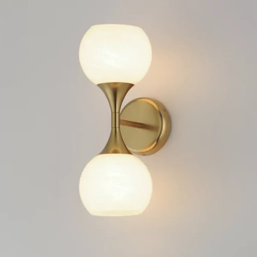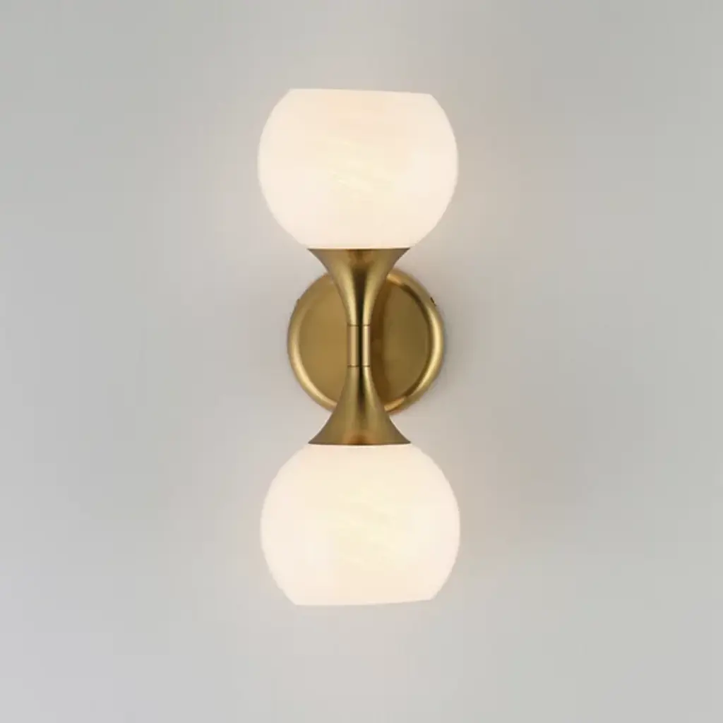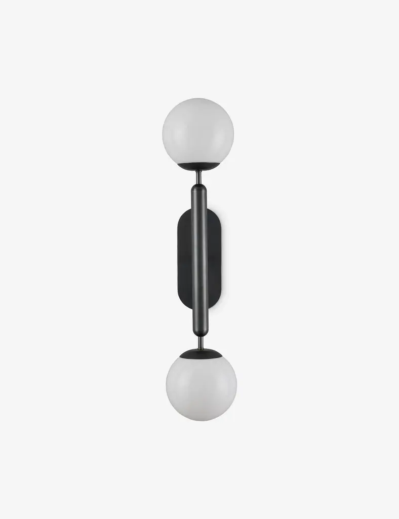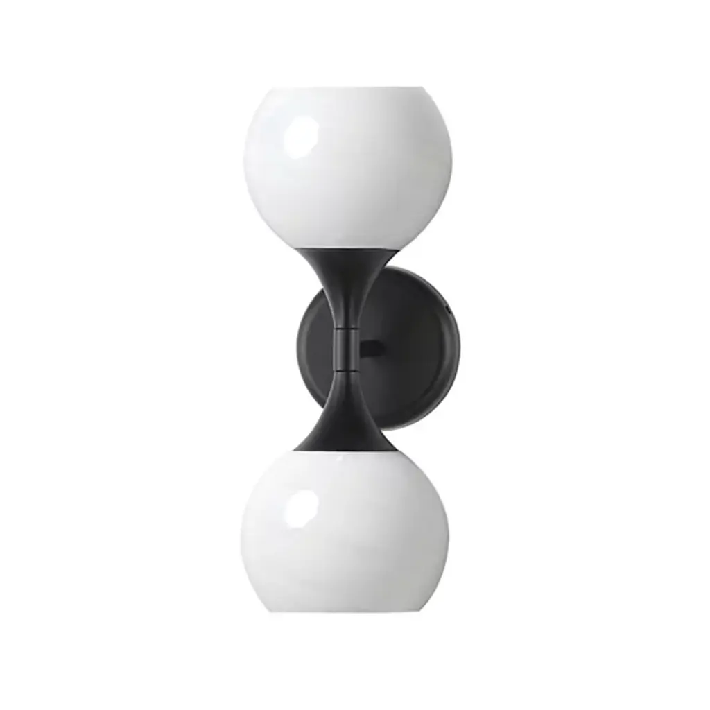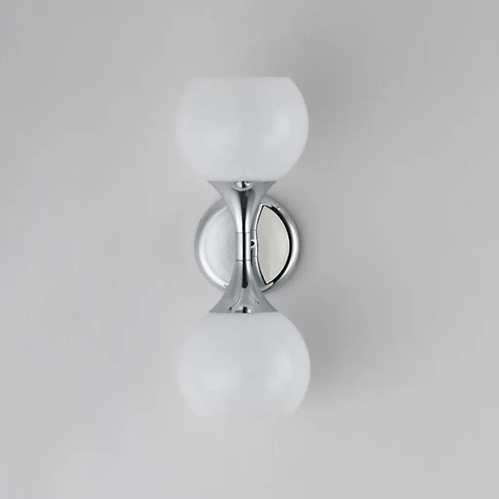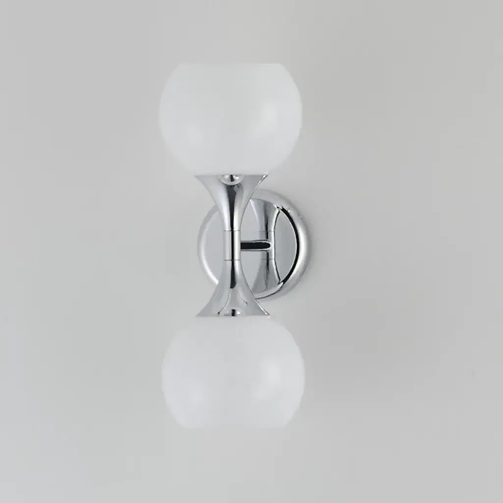 The Neve 2-Light Wall Sconce from Maxim Lighting brings interior spaces a cool, sculptural flair. This design adds a wintry charm with a soft touch, featuring two swirling white marble glass shades that resemble delicate snowglobes. Each round shade softly diffuses the light, creating a warm and inviting ambiance. Mounted on a smooth steel frame, the fixture is damp-listed, meaning it can be a refined addition to bathrooms, hallways, or other compact corners.