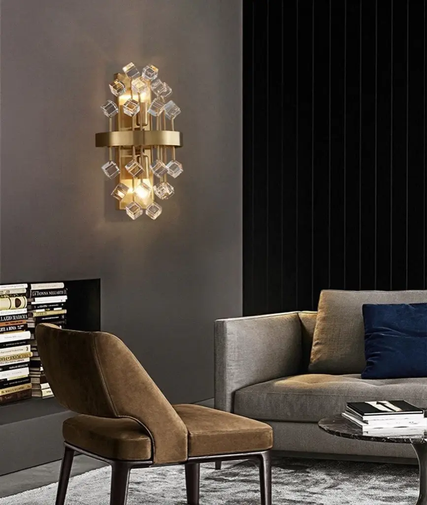 New Brushed Colorful Wall Lamp For Bedroom, Living Room., Cube Crystal