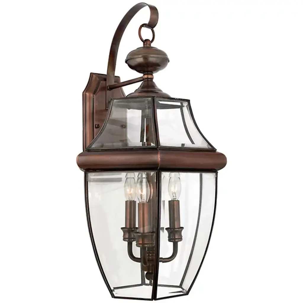 The Newbury Outdoor Wall Sconce from Quoizel is a classic lighting fixture is crafted from metal, providing durability and a rich, sophisticated appearance. Newbury adds a touch of curbside charm, creating an ambiance that enhances the aesthetic of your home. Its versatile design effortlessly coordinates with various architectural styles, seamlessly integrating into your outdoor décor. Newburry features clear beveled glass for added. Your outdoor wall sconce is made to withstand the elements easily.