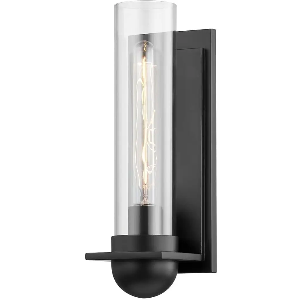 Adorn your favorite space with a clean and shining creation perfect for modern homes looking for an ample dose of elegance. The Niccolo Wall Sconce from Huxe starts with a rectangular metal backplate that extends a brief, squared arm that upholds the lamp base. The arm angles sharply and runs up the length of the clear, cylindrical glass shade, accenting the top with a matching metal ring. The single bulb at the center shines a warm, tasteful glow that instantly impresses and delights.