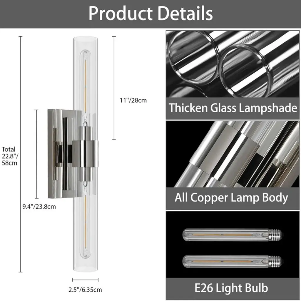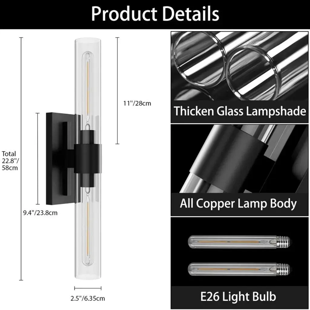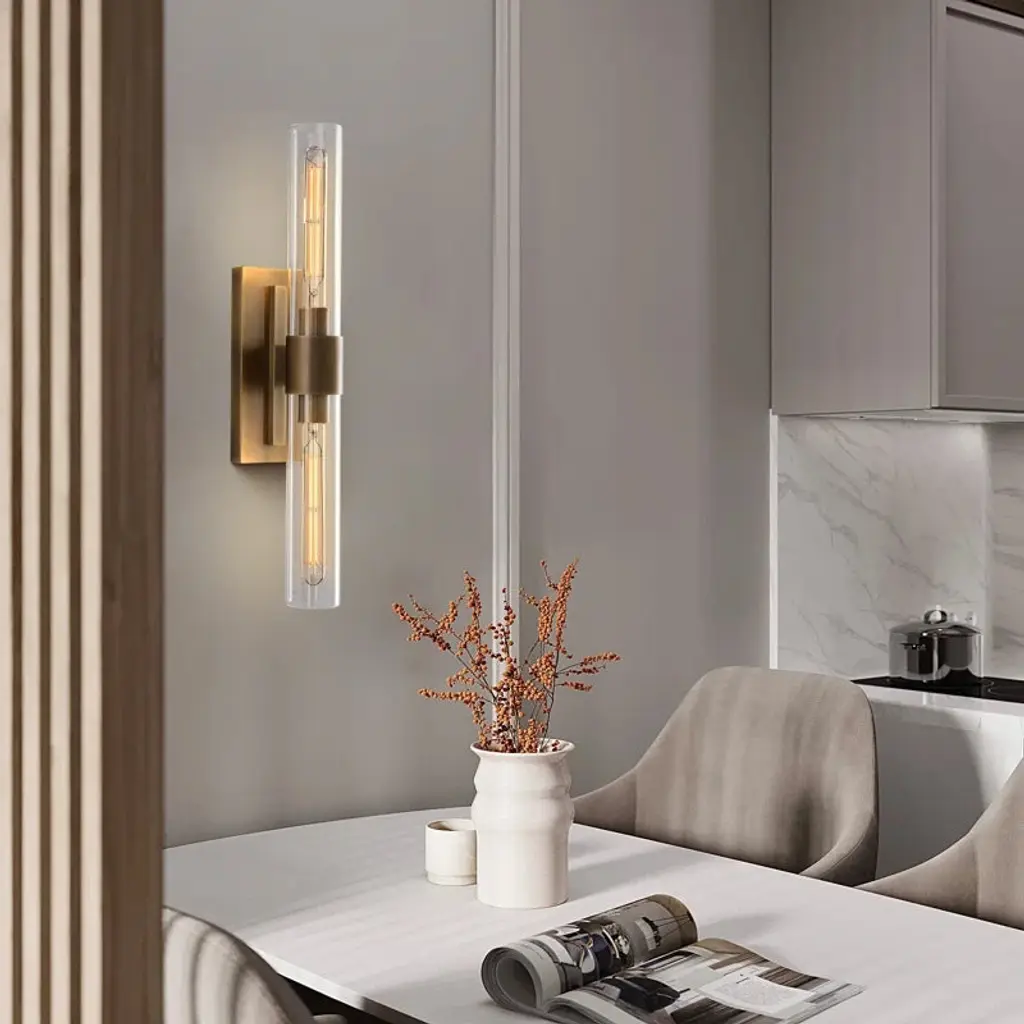 Infused with refined industrial charm, this wall sconce exudes a captivating visual presence. Its sleek, minimalist design features transparent glass cylinders extending gracefully from a structured rectangular backplate, blending modern sophistication with timeless appeal. Designed for versatility, the fixture can be mounted either vertically or horizontally—allowing you to tailor the lighting to your desired mood and space.Perfect for elevating the atmosphere in bathrooms, hallways, or accent walls, this chic wall light brings both function and elegance to any interior setting.