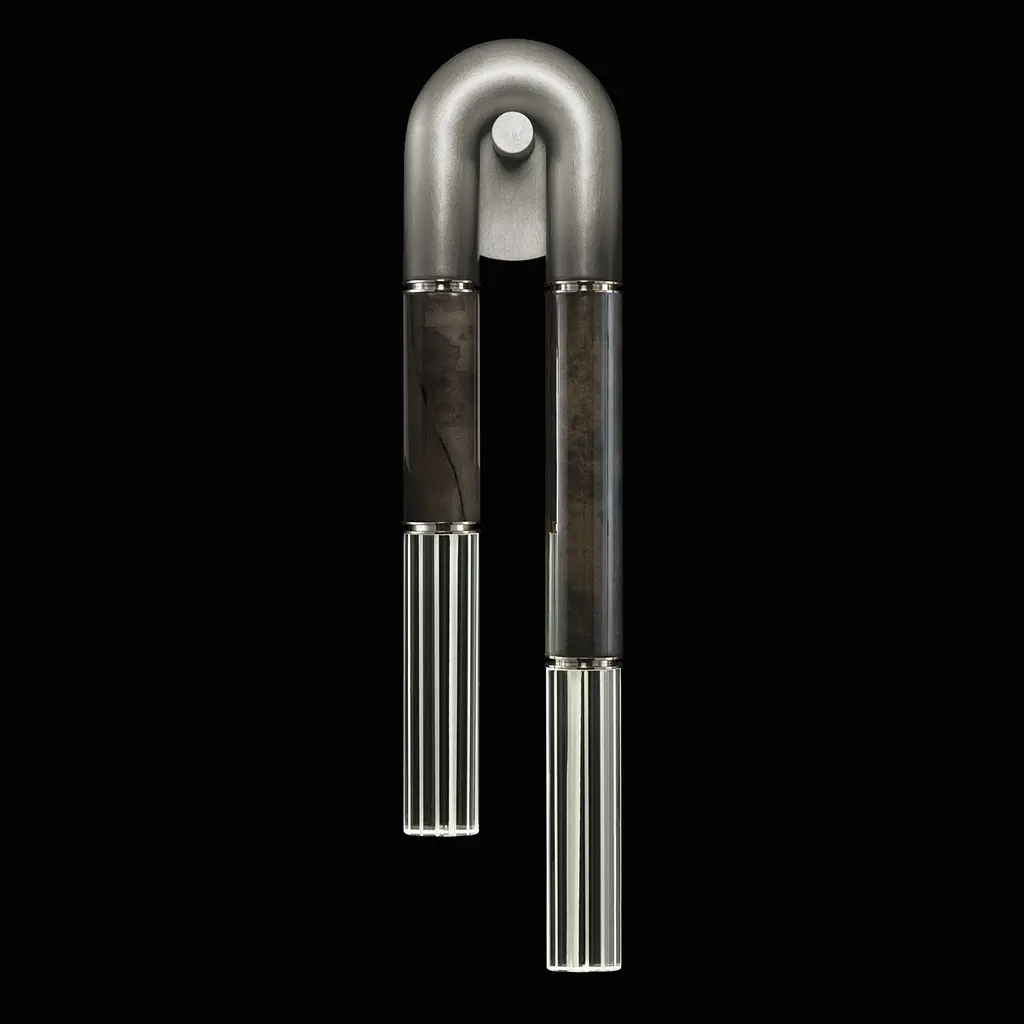 Nickel wall lamp neon double 170 by Magic Circus EditionsDimensions: H. 170 cm, W. 37 cm, D. 11 cm, 3.6 kg.Materials: fluted brass tube and glass.Available finishes: brass (lacquered polished brass, unlacquered polished brass, brushed brass) or nickel (lacquered polished nickel, brushed nickel).Available colors for tubes: black, red brick, red wine, green pine, blue ink.All our lamps can be wired according to each country. If sold to the USA, it will be wired for the USA, for instance.Rethinking, reimagining, redesigning familiar objects that we look at every day without ever seeing them, and using light to tell stories is how Marie-Lise Féry sees her work—offering a new take on our urban heritage, changing our perspective through her work on scale and usage. Since 2015, Magic Circus Éditions has set the world of lighting ablaze, creating airy, playful, and magical designs that merge retro with sleek and contemporary.A free-spirited antiquarian, founder Marie-Lise Féry draws inspiration from the world of cabarets and the magic of the circus to give shape to imaginative, fun, and playful collections. The air of magic she breathes into her work reveals a wealth of interpretations and widens possibilities for creative interiors.The combination of traditional know-how - outstanding craftsmanship - and her imaginative take on historical, everyday objects lends an unexpected and charming quality to her creations.Féry’s lights are designed just like magic lanterns - a precursor to modern-day cinema -, inspiring wonder through oversized, seemingly weightless compositions and understated references.Each collection has its own inspiration: the first models of street lighting for Collection 01; the happy memories of funfairs, sweets, and balloons for her latest collection Balloon; the Far East for Collection 02; and the colorful, carefree spirit of the 1970s for Pop-Up, released in 2019. Magic Circus Éditions draws on airy designs, dream-like inspirations, colors, and fun to create a sense of enchantment.Magic Circus Éditions founder Marie-Lise Féry was born in Paris. After studying art business, she moved to New York to start her career. Fascinated by the city’s architecture, she found an endless source of inspiration in the Big Apple’s monumental decors. Returning to France to settle down in Lyon, she opened an antiques gallery named Un Château en Espagne and started telling her own stories through objects she gleaned on markets all around the country. A way for her to perpetuate her mother’s motto: “Objects with a soul will always belong”. Since 2015, the year she established Magic Circus Éditions, she has moved on to lighting as a new medium for telling her stories, bringing the show's magic into home interiors. With her love for the circus, turn-of-the-century cabarets, and music halls, Marie-Lise Féry’s love of unusual objects has remained strong but now prefers to focus her attention on pieces she has imagined herself. She creates a bold visual effect with a fun and light-spirited approach that elicits instant attraction. She collaborates with some of Europe’s greatest artisans, from Prague and Murano to Clermont-Ferrand, working with a Czech company specializing in sculpting glass using a diamond blade saw or an auto body shop renowned for their work with lacquers. The refinement of shapes and finishes, bespoke designs, and technical excellence all contribute to creating pieces that inspire surprise and wonderment. In the manner of Wes Anderson in Grand Budapest Hotel, blending together elegance, humor, and unexpected details, her designs never fail to surprise. Attentive to the effect of her designs both in daylight and at night, Marie-Lise Féry takes us on a journey through space (from outside to inside) and time (from yesterday to today).