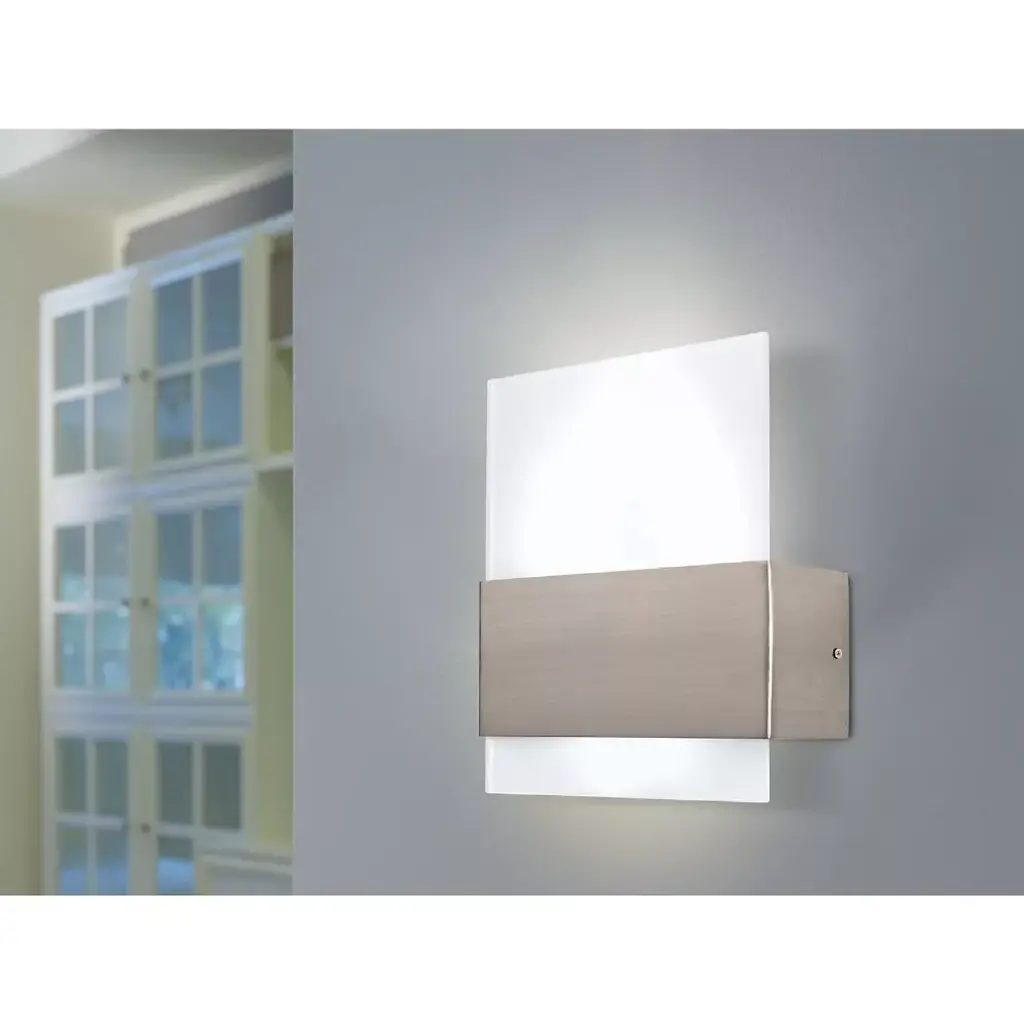 Eglo lighting is a stunning addition to any area. Traditional Modern = Transitional. The The Nikita Wall Light is a very transitional piece that adds a modern touch with the steel metal base and satin glass to compliment it. Modern and minimalist, the Nikita collection adds a unique flair to any application. The wide Matte Nickel stripe can be left as-is, or adorned with a sophisticated Satin glass pane. This is made from premium materials, this Wall Light offers great function and value for your home. This fixture is part of Eglo's decorative Nikita Collection, so make sure to check out other contemporary fixtures to accessorize your room.