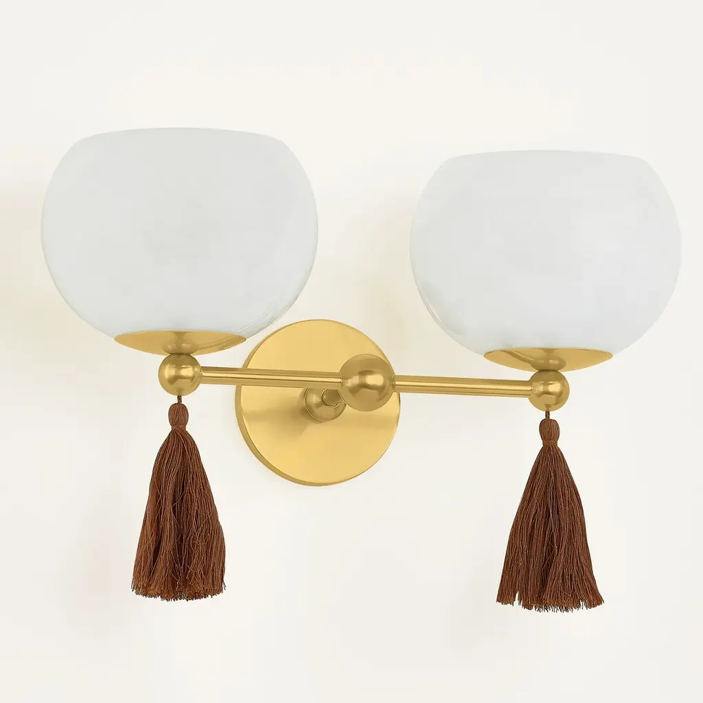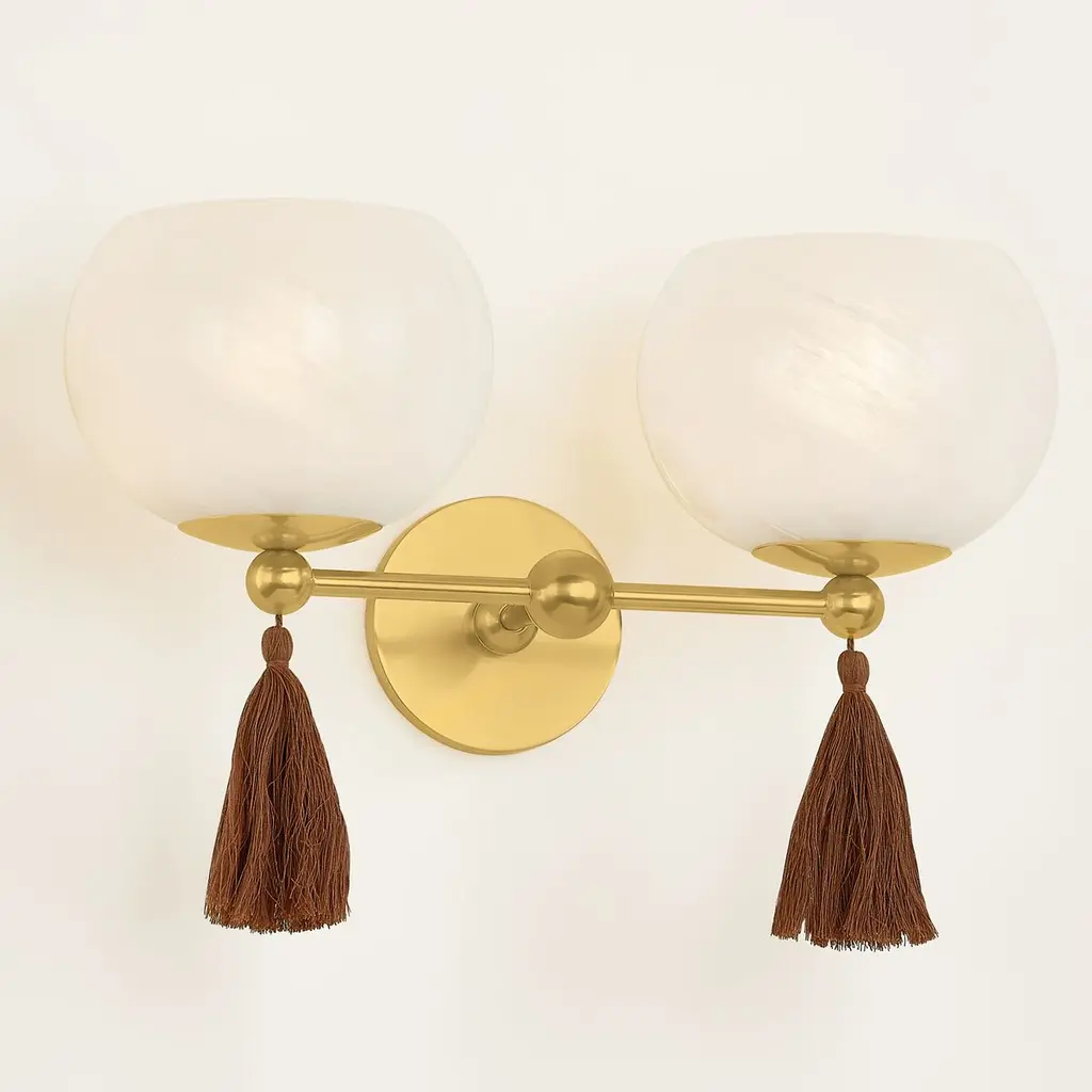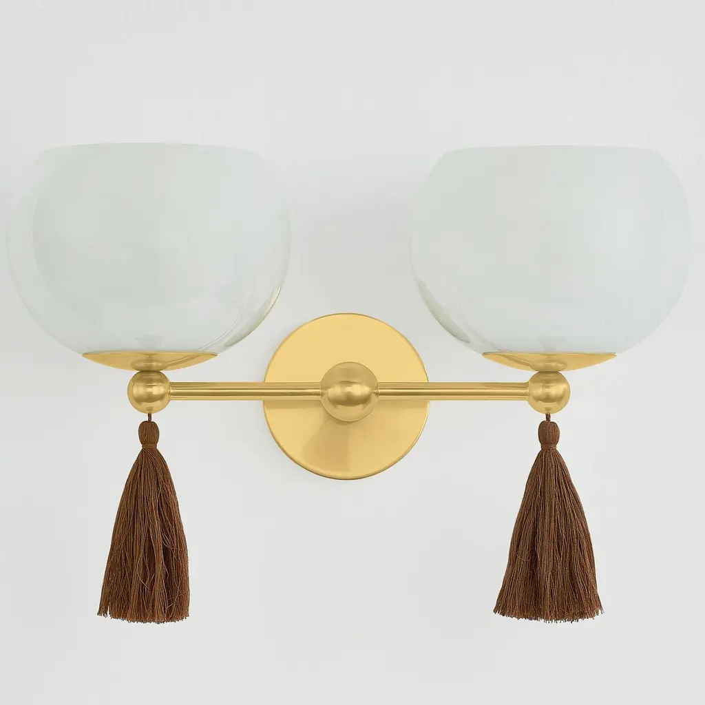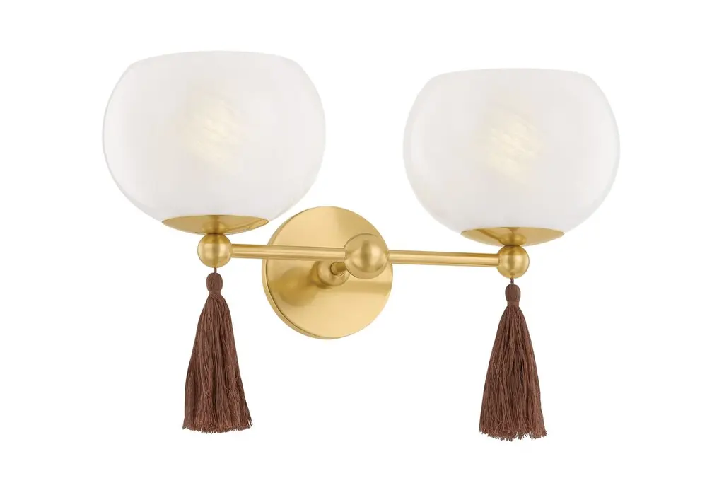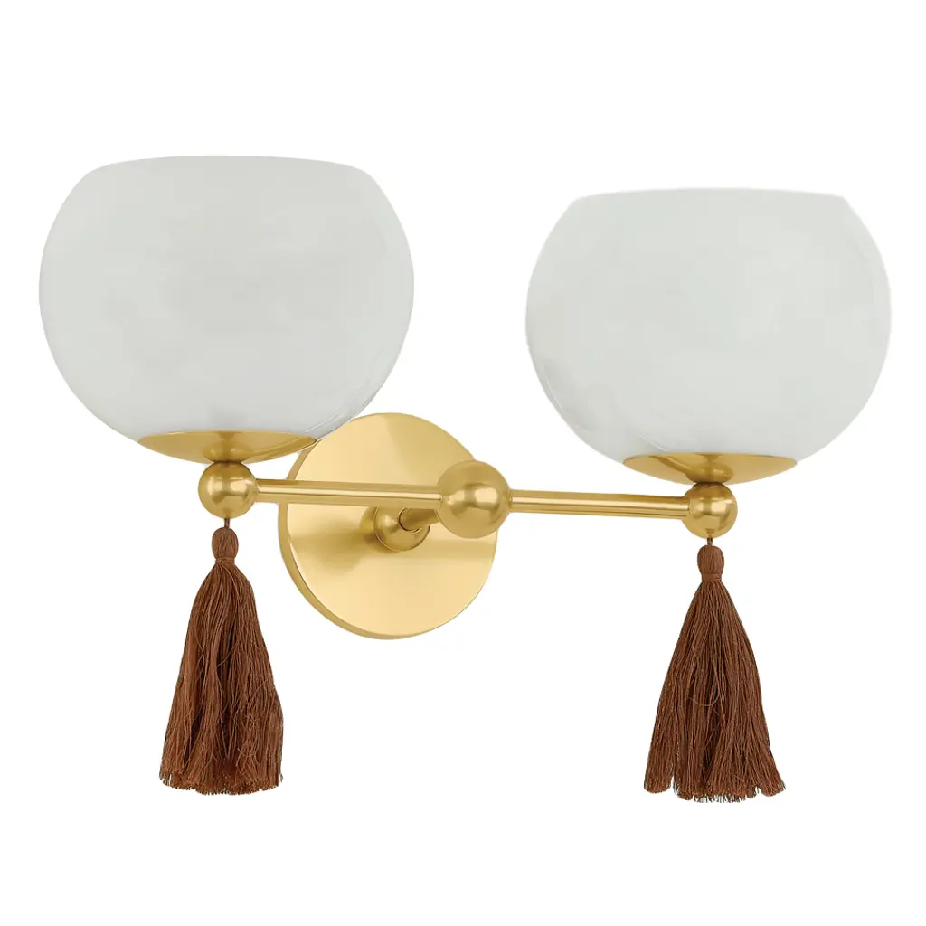 Niya Tassel 2-light Wall Sconce, Aged Brass/cloud Glass