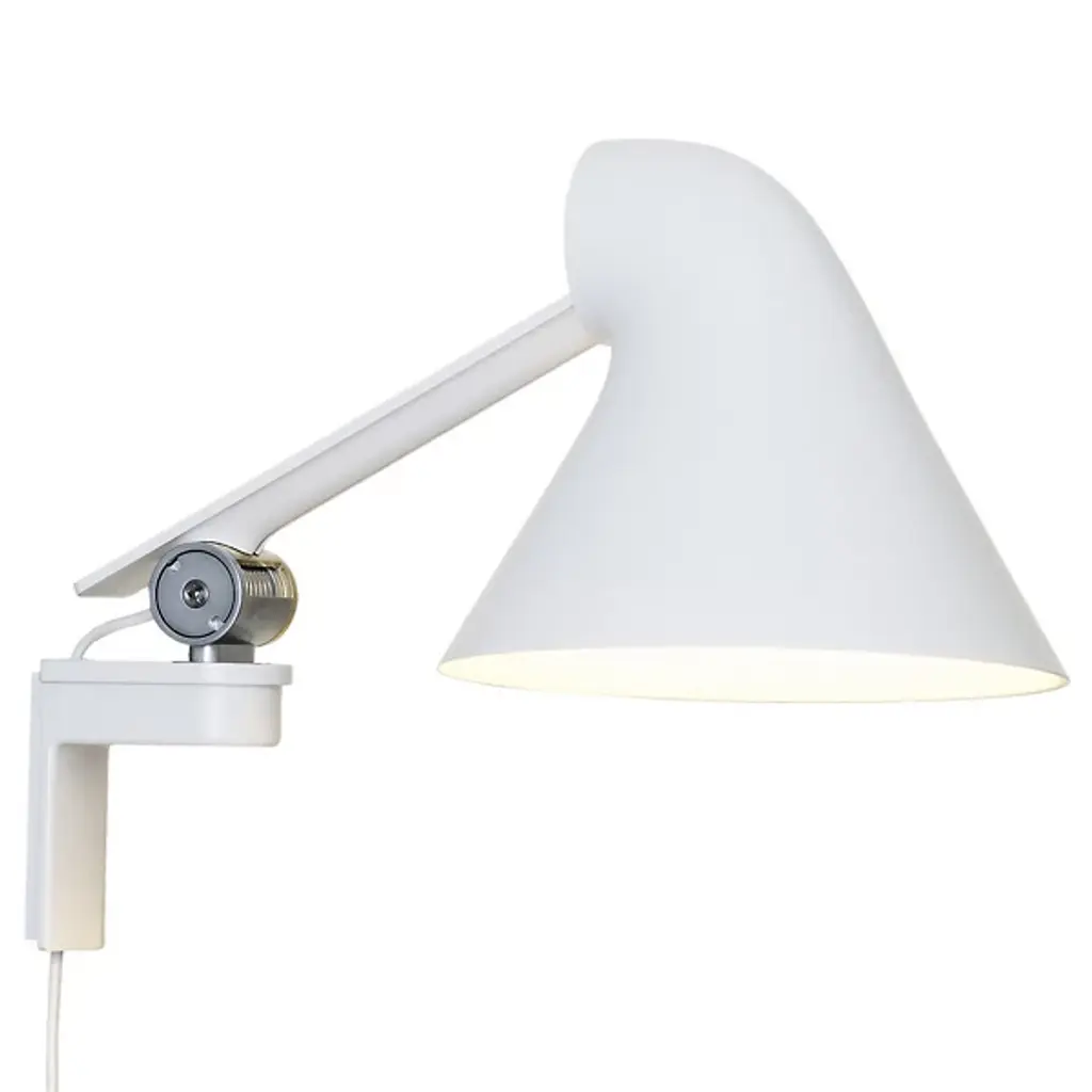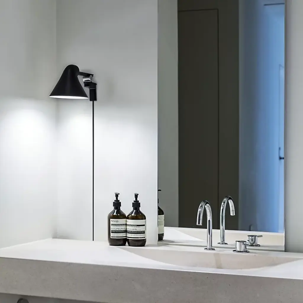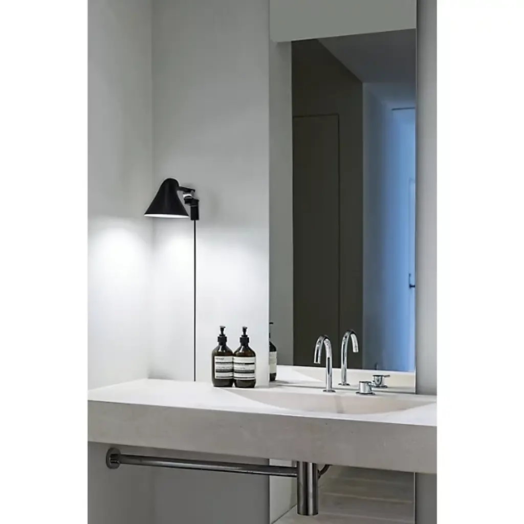 The NJP Short LED Wall Sconce from Louis Poulsen was designed by Oki Sato of Nendo Design Studio. It reimagines the classic anglepoise lamp with modern functionality for both office and home use. The NJP Short LED Wall Sconce's flexible head and arms offer exceptional adjustability, making it ideal for bedrooms with adjustable beds. Featuring an LED light source positioned high to prevent glare, its chimney-shaped head reflects light through the rear, illuminating the top of the arm while allowing heat to escape.
