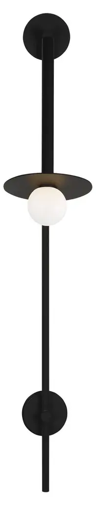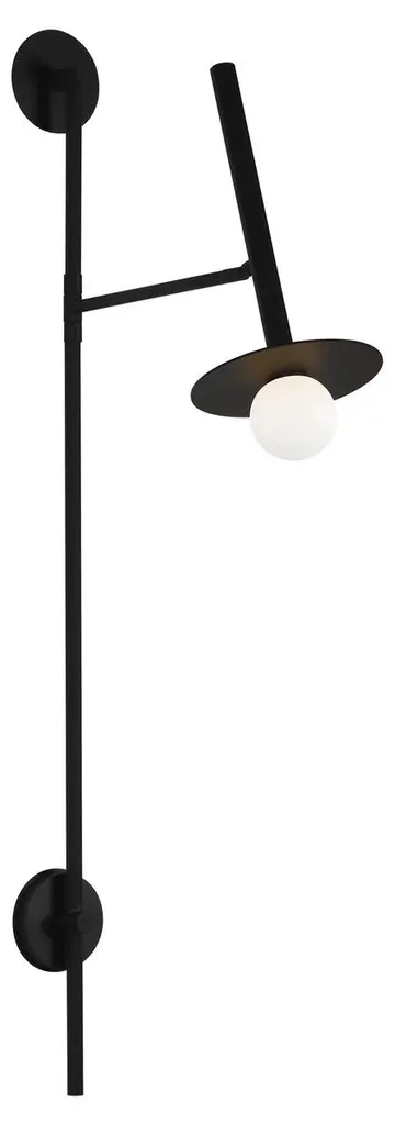 This sconce is a sleek study of contrasts: straight lines and graceful circles, opalescent mouth-blown milk glass and steel given a black finish. Its adjustable arm allows you to direct light wherever you need it, making this ideal for beside a bed. And because it's safety listed for damp locations, you can use it in a bathroom.