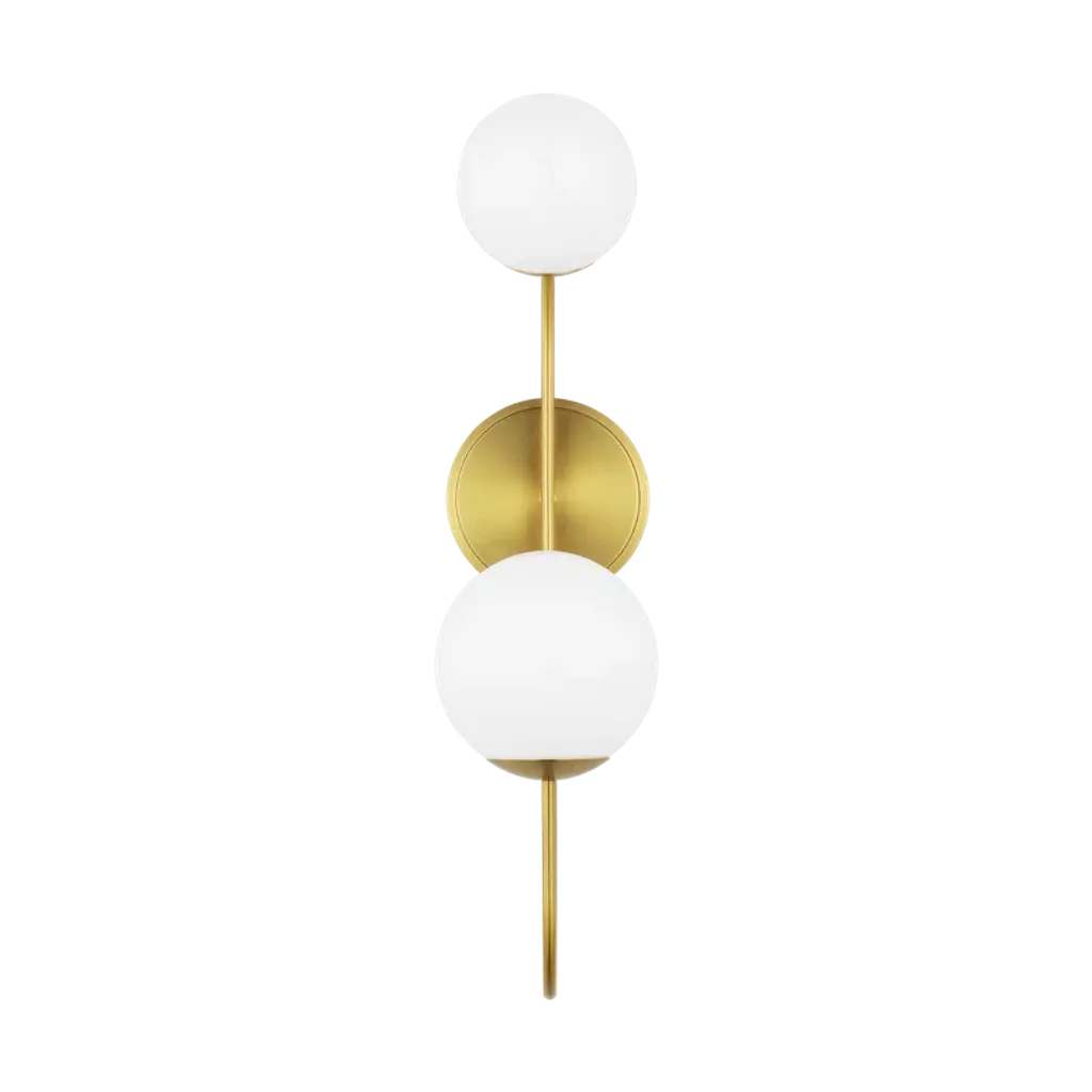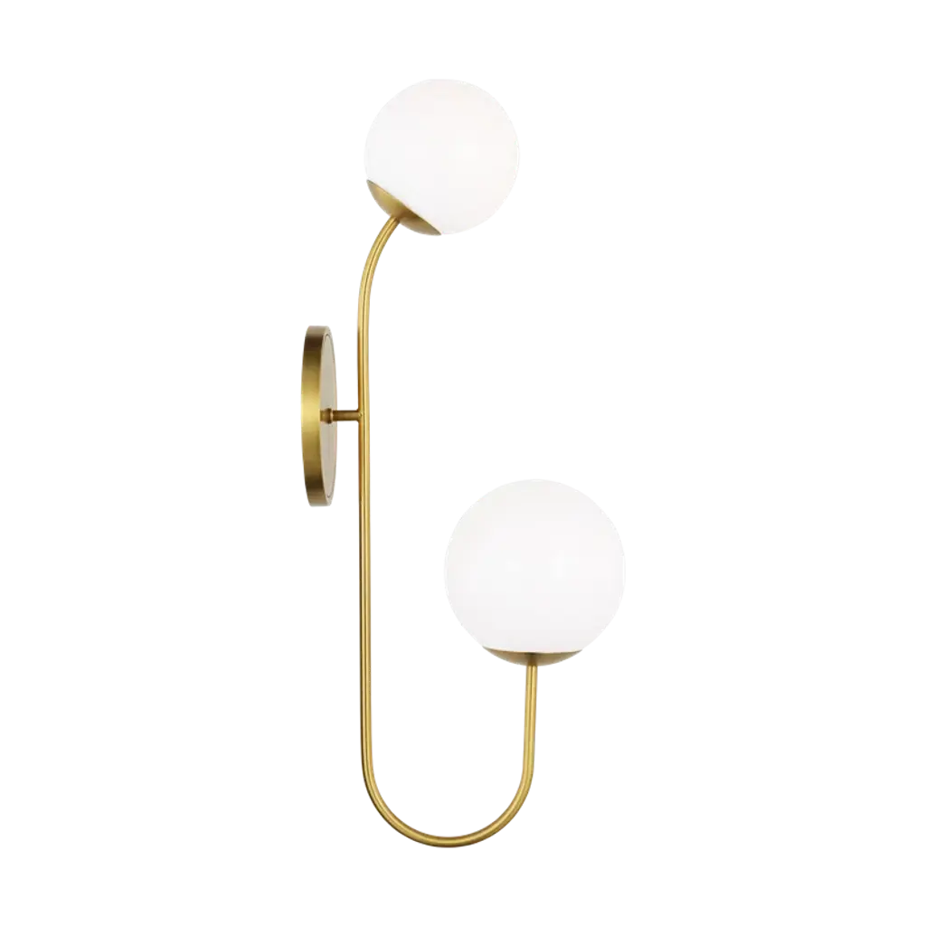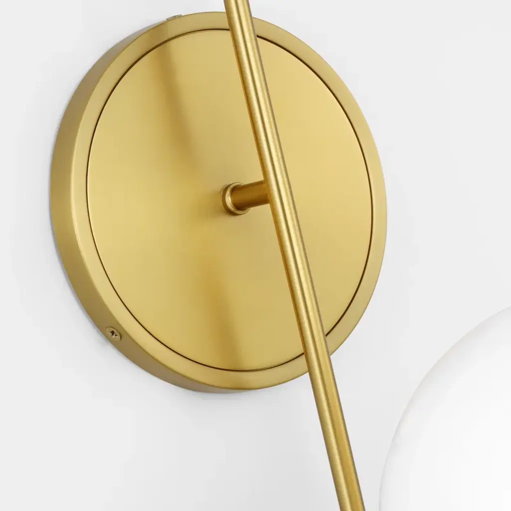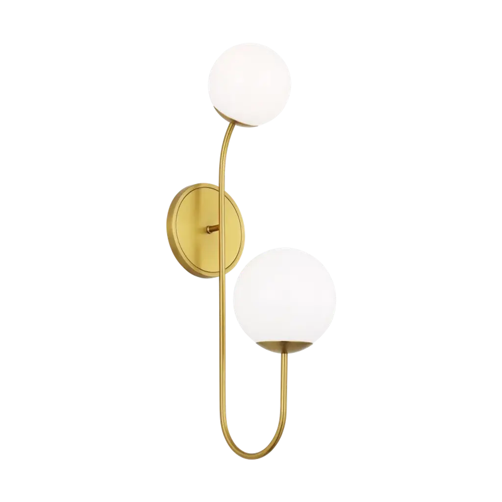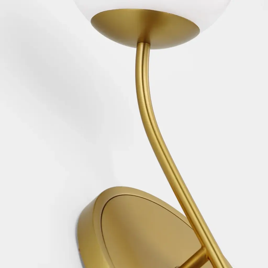 The Noemie wall sconce by kate spade new york perfectly balances a glass globe and curving teardrop frame, giving it a contemporary look. The white glass casts a soft, welcoming glow over a space. This piece works particularly well in a hallway.