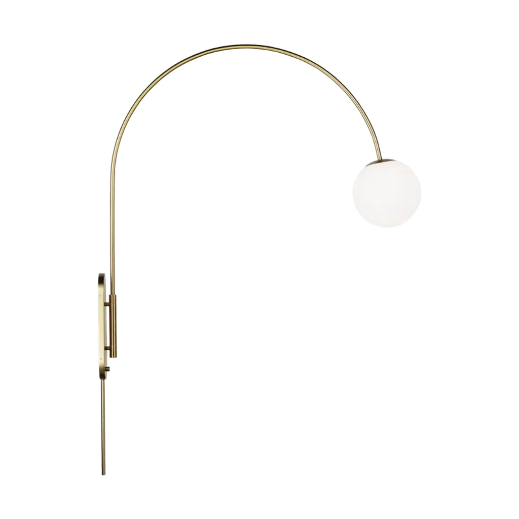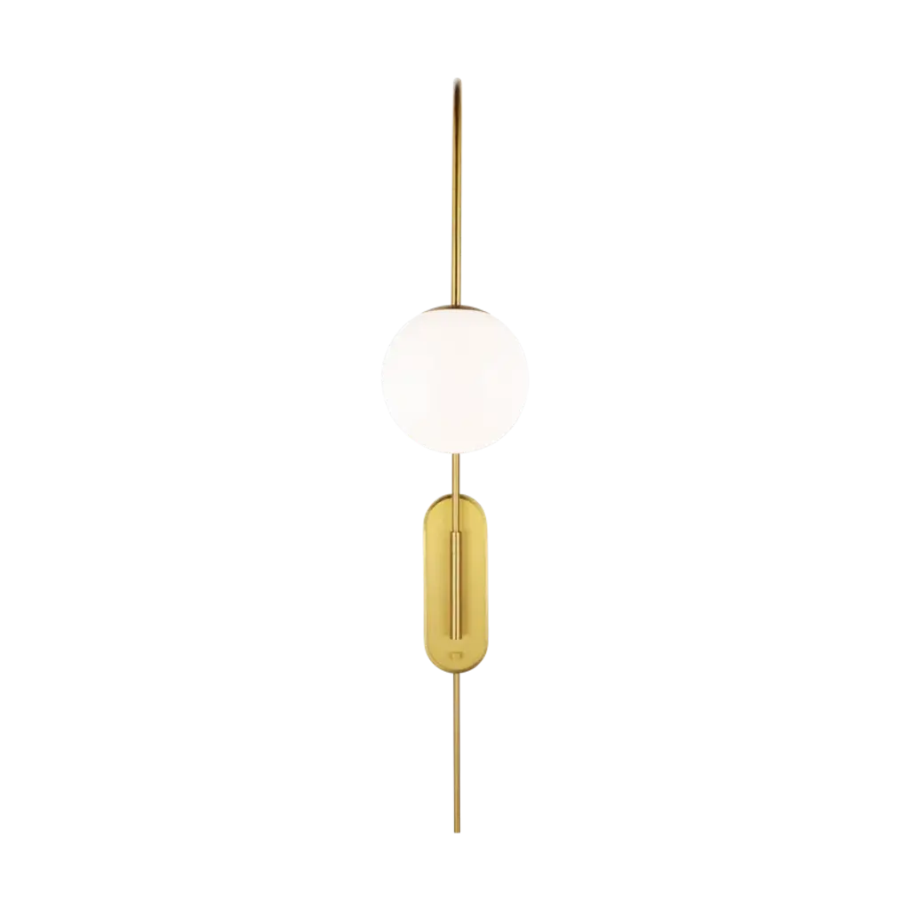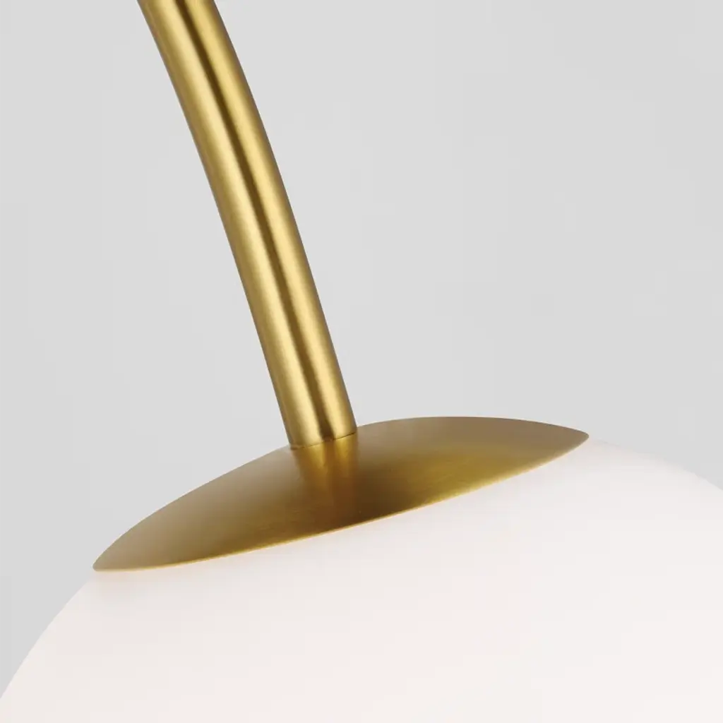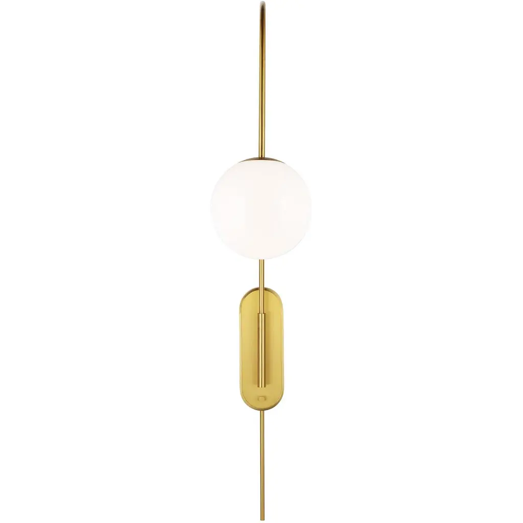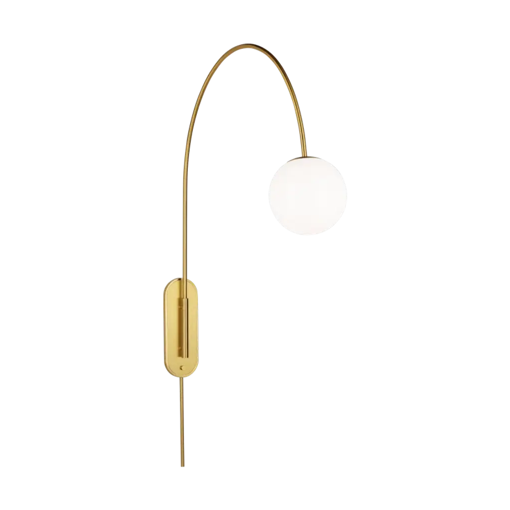 The Noemie swing arm lamp by kate spade new york perfectly balances a glass globe and curving teardrop frame, giving it a contemporary look. The white glass casts a soft, welcoming glow over a space. A colored backplate adds a fun, unexpected pop of color to any room. This articulated swing arm can be moved into the perfect place.