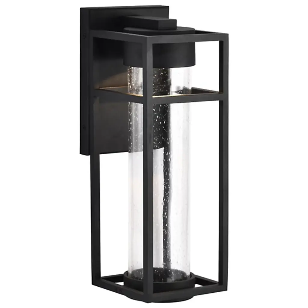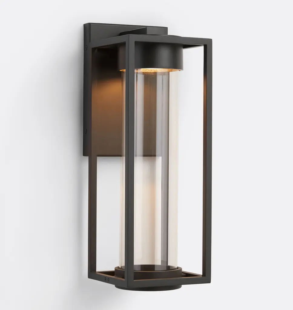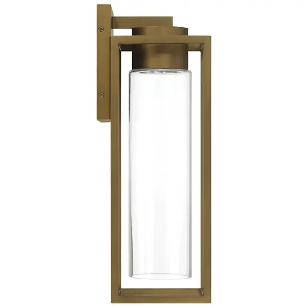 The Norbert LED Wall Light from Alder & Ore offers a stylish and functional lighting solution for entryways. It has built-in LEDs and illuminates a slender glass cylinder, eliminating the glare of traditional bulbs while providing a warm glow for a welcoming ambiance. Constructed with a durable aluminum frame in a painted finish, it is designed for long-lasting outdoor use. Wet-listed for reliability, the clear glass with a metal ring adds a refined touch to exterior spaces.