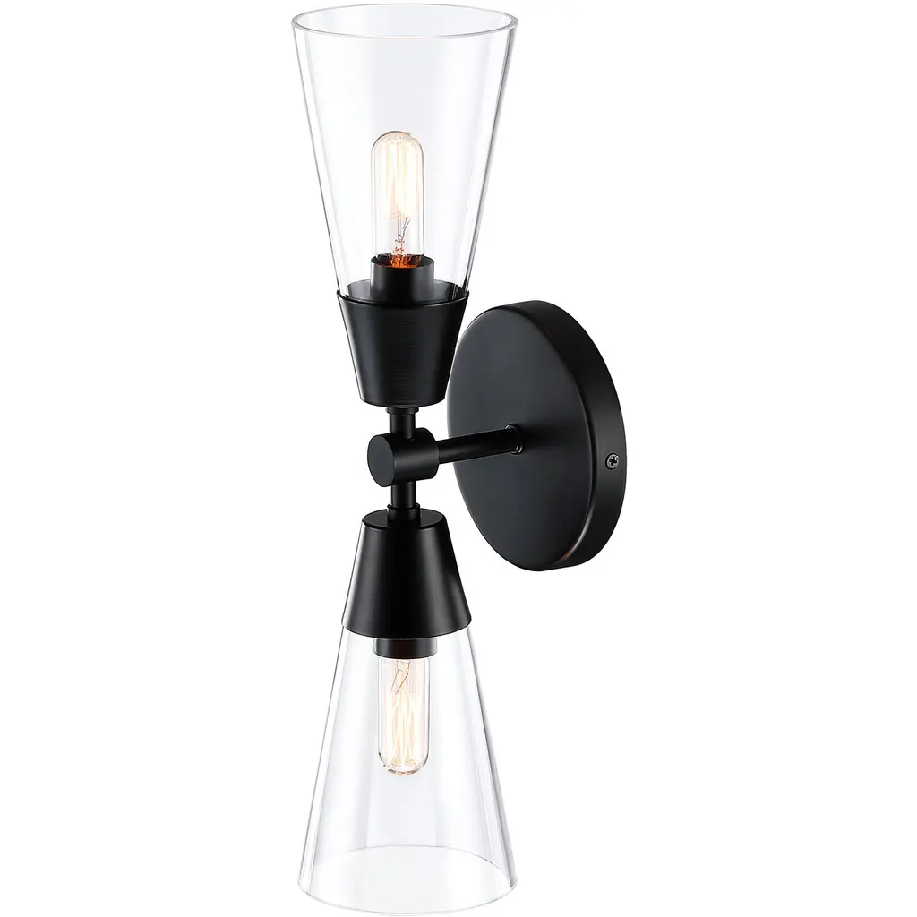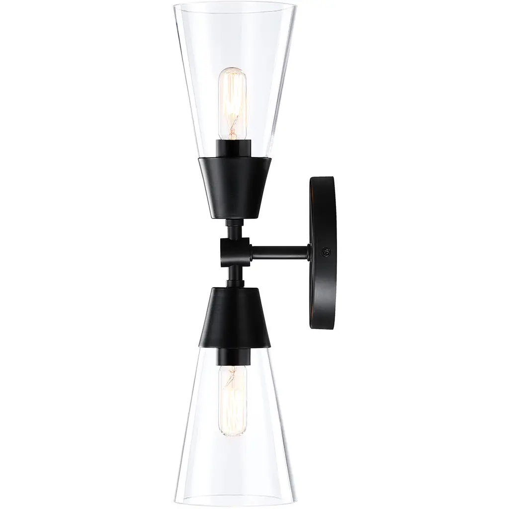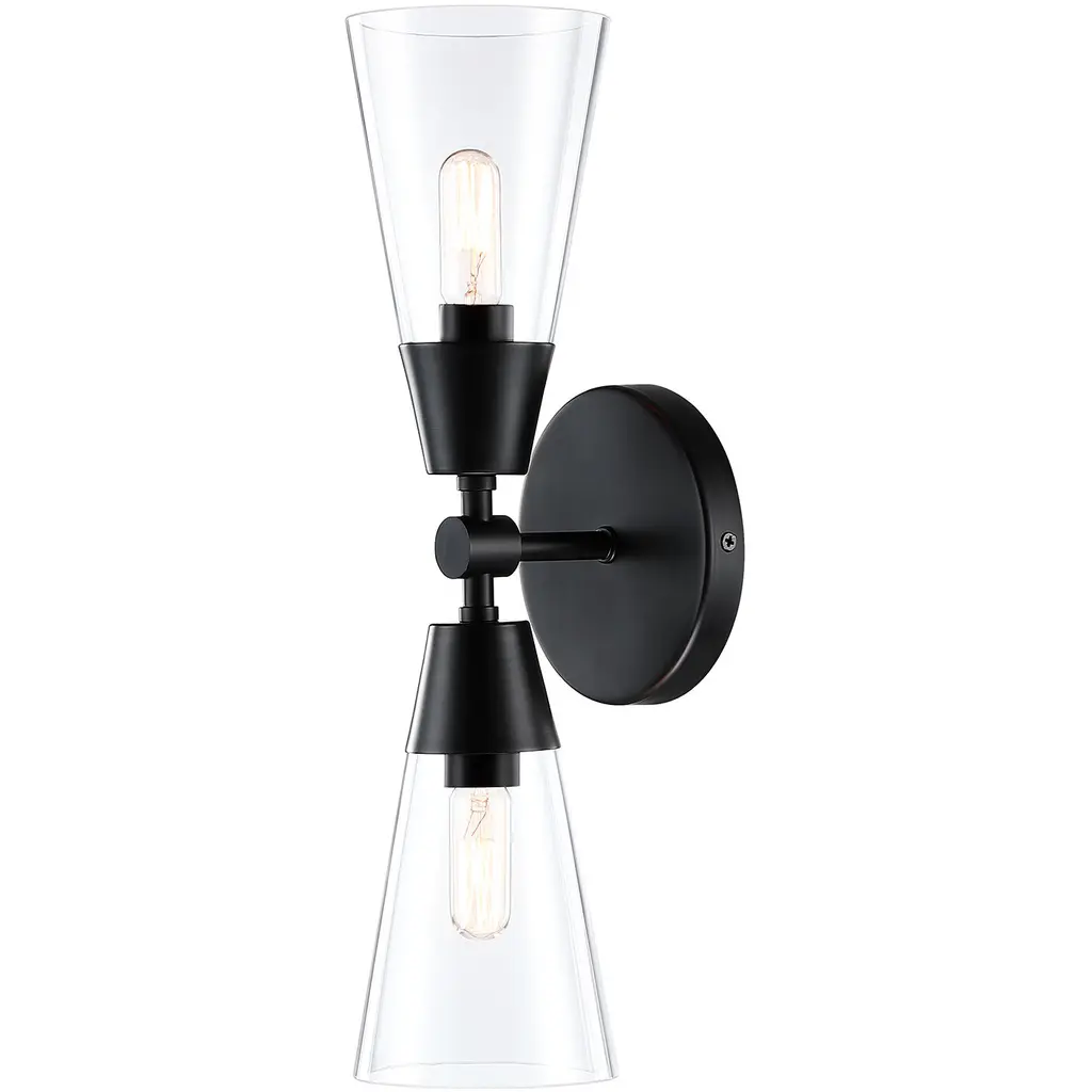 Designers Fountain's Norro family is modern geometric design at it best. Featuring conical clear glass shades and a sleek matte black finish, the minimalist look will be great many décors - especially mid-century modern homes or with retro-themed interior design. With a variety of configurations, you're sure to find the perfect piece to start conversations and make your visitors jealous.