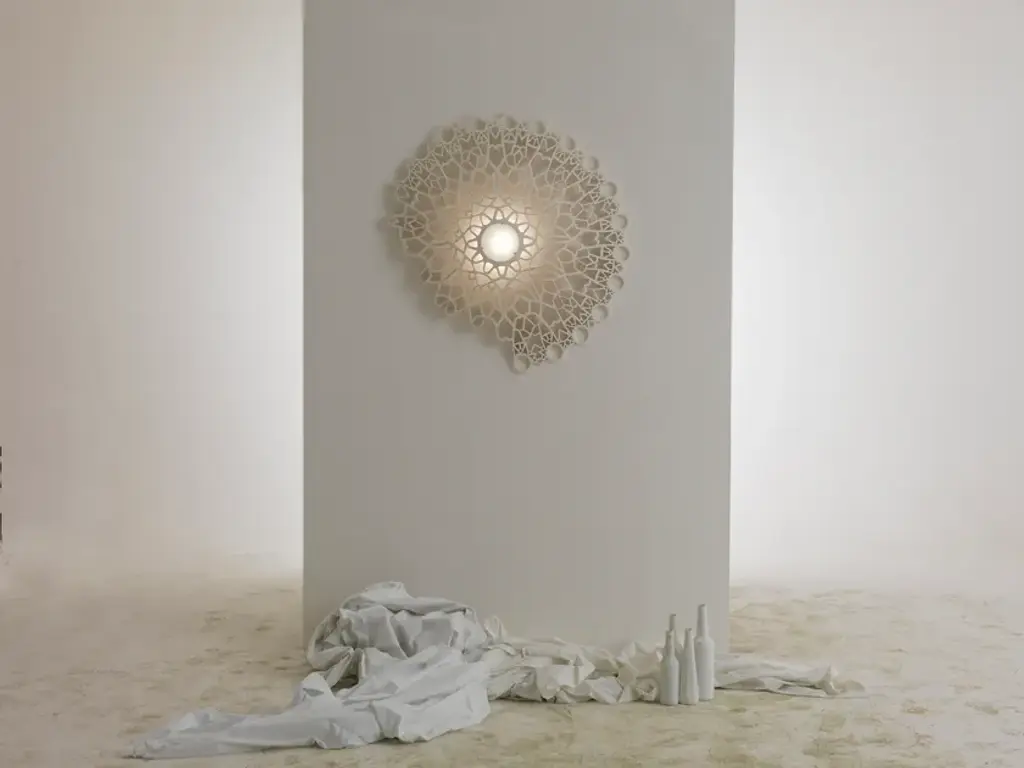 NOTREDAME, design by Debonademeo for Karman, is an LED wall lamp in technical marble.Notredame swinging ceiling and wall lamp size.max x w energy saving