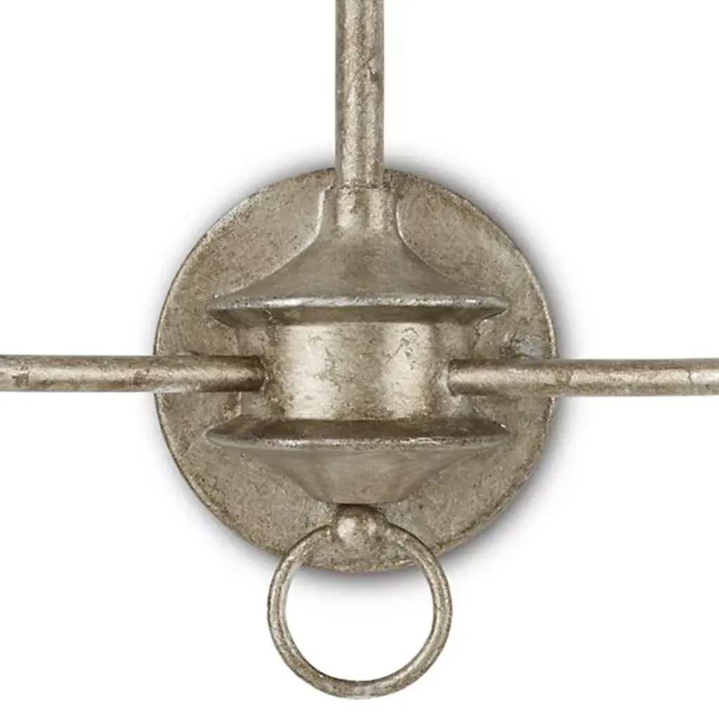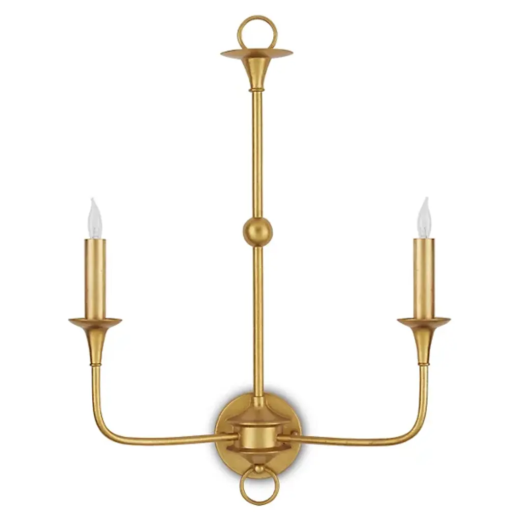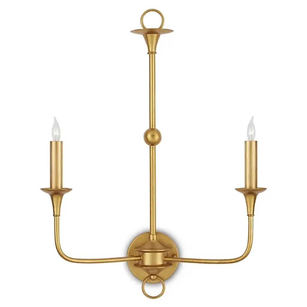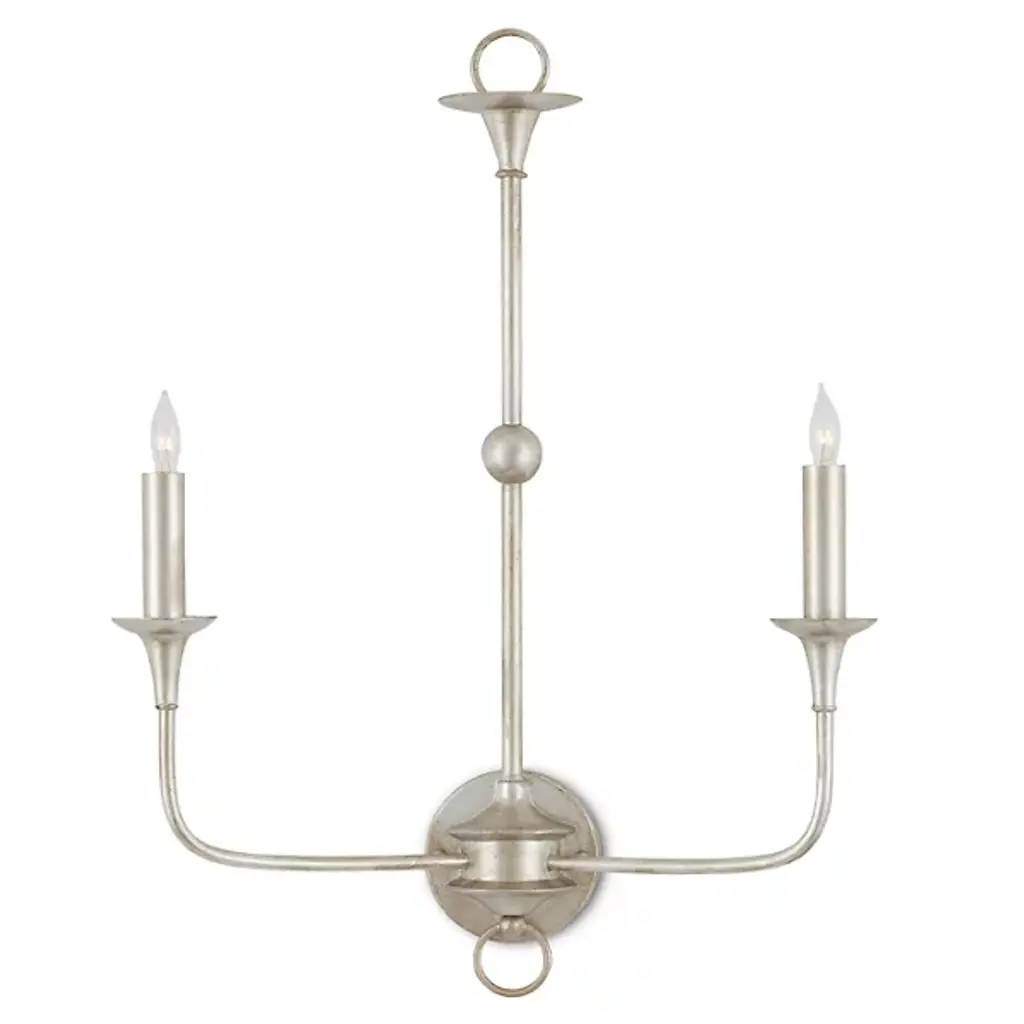 The Nottaway Double Wall Sconce by Currey & Company introduces a stylish and transitional lighting solution for your indoor walls. Its design showcases two gracefully extending arms emerging from a half-spool base, unveiling open candelabra-style lamping. Adorned with a delicate ring accent on the central stem, this sconce is designed with damp-listed lamping, ensuring its versatility in various settings. Its profile harmoniously incorporates into traditional and transitional interiors. The wrought iron frame’s metallic finish adds a touch of subtle textural interest, achieving a perfect fusion of vintage charm and graceful sophistication.