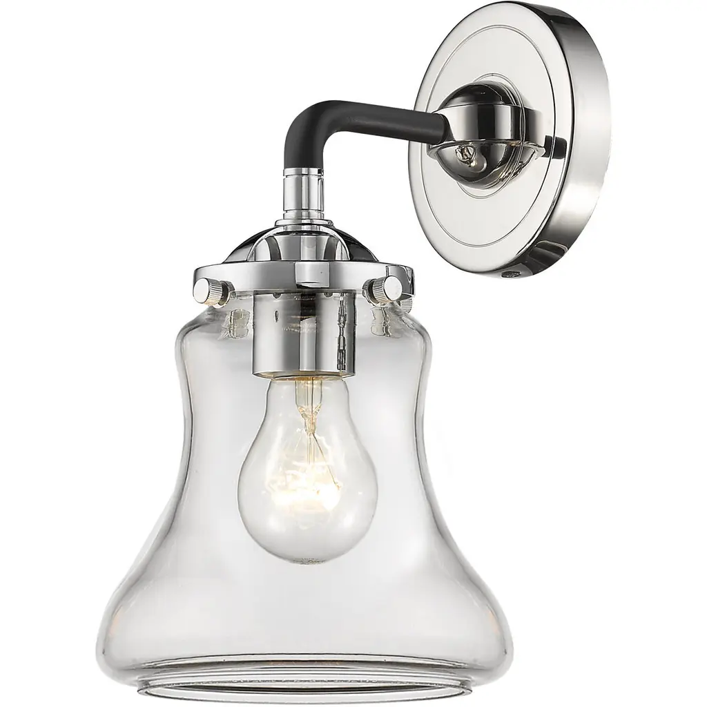 Nouveau Bellmont 1 Light 6 Inch Black Polished Nickel Sconce Wall Light In Clear Glass, Nouveau