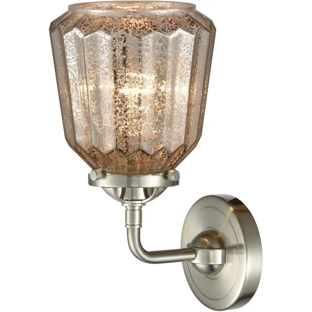 Nouveau Chatham Led 6 Inch Brushed Satin Nickel Sconce Wall Light In Mercury Glass, Nouveau