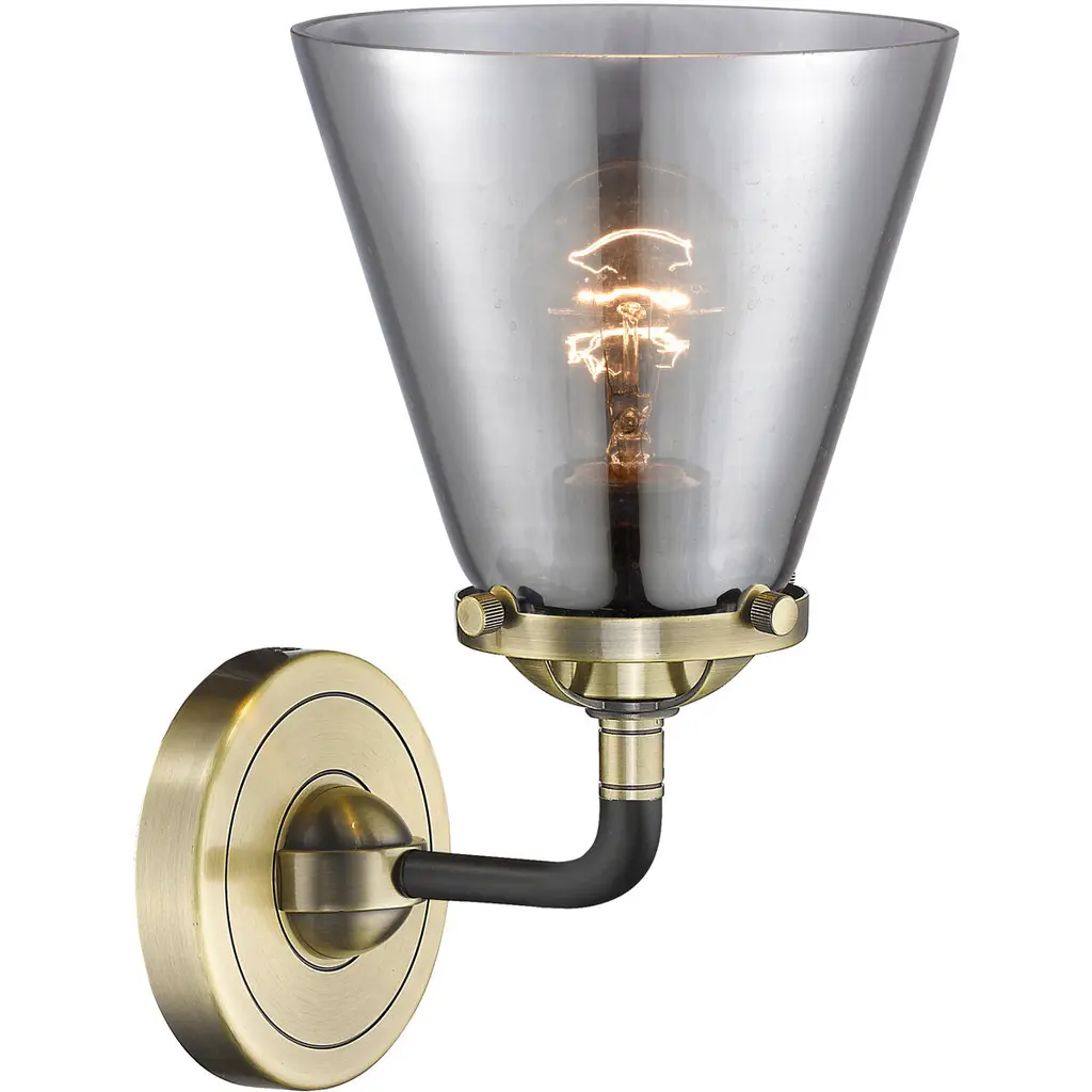 Nouveau Small Cone Led 6 Inch Black Antique Brass Sconce Wall Light In Plated Smoke Glass, Nouveau
