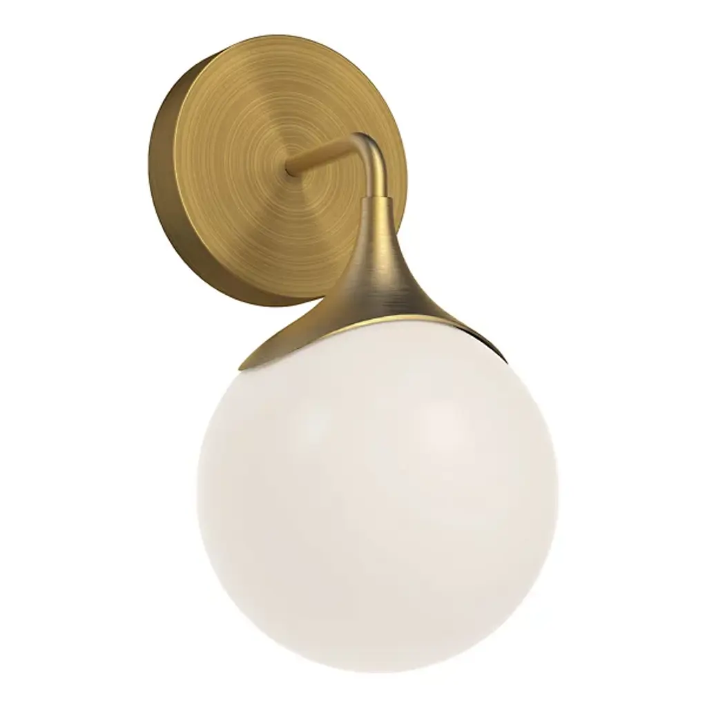 The ornate Art Nouveau style achieves a functional yet sensual character in the Nouveau Wall Sconce from Alora Mood. It’s a modern design, pulling its clean look from the early to mid-20th century lighting classics. The sconce brings its cozy ambiance to every corner of the home, thanks to its compact circular backplate. A slender arm shoots out from the backplate and angles down to create an attractive L-shaped silhouette. In one fluid motion, the metal lamp holder and the glass globe shade produce an artful teardrop silhouette. The shade’s opaque surface shields one from glare and helps disperse an aura of ambient warmth.