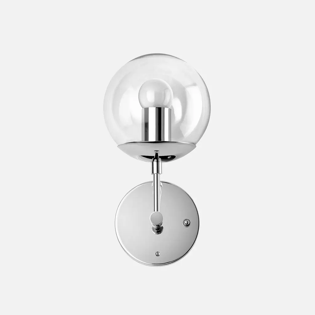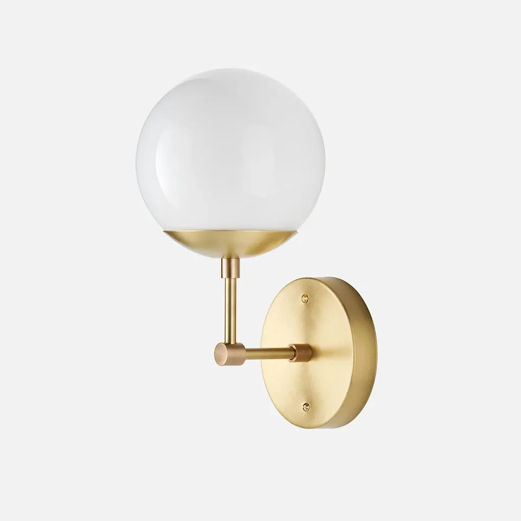 The Nova L Sconce flashes starry brilliance in any space it’s seen in. Its orb-like shade and slender L-rod silhouette nods to the geometric tendencies of mid-century modern design, but the Nova also blends into a variety of more traditional rooms due to its craftsmanship and quality of light. Choose between opal and clear glass shades and among four elegant paint or patina options. Assembled in our Portland, Ore. factory using ethically-sourced domestic and global components. A Schoolhouse Original. Learn how to choose perfect wall sconce placement on our blog.