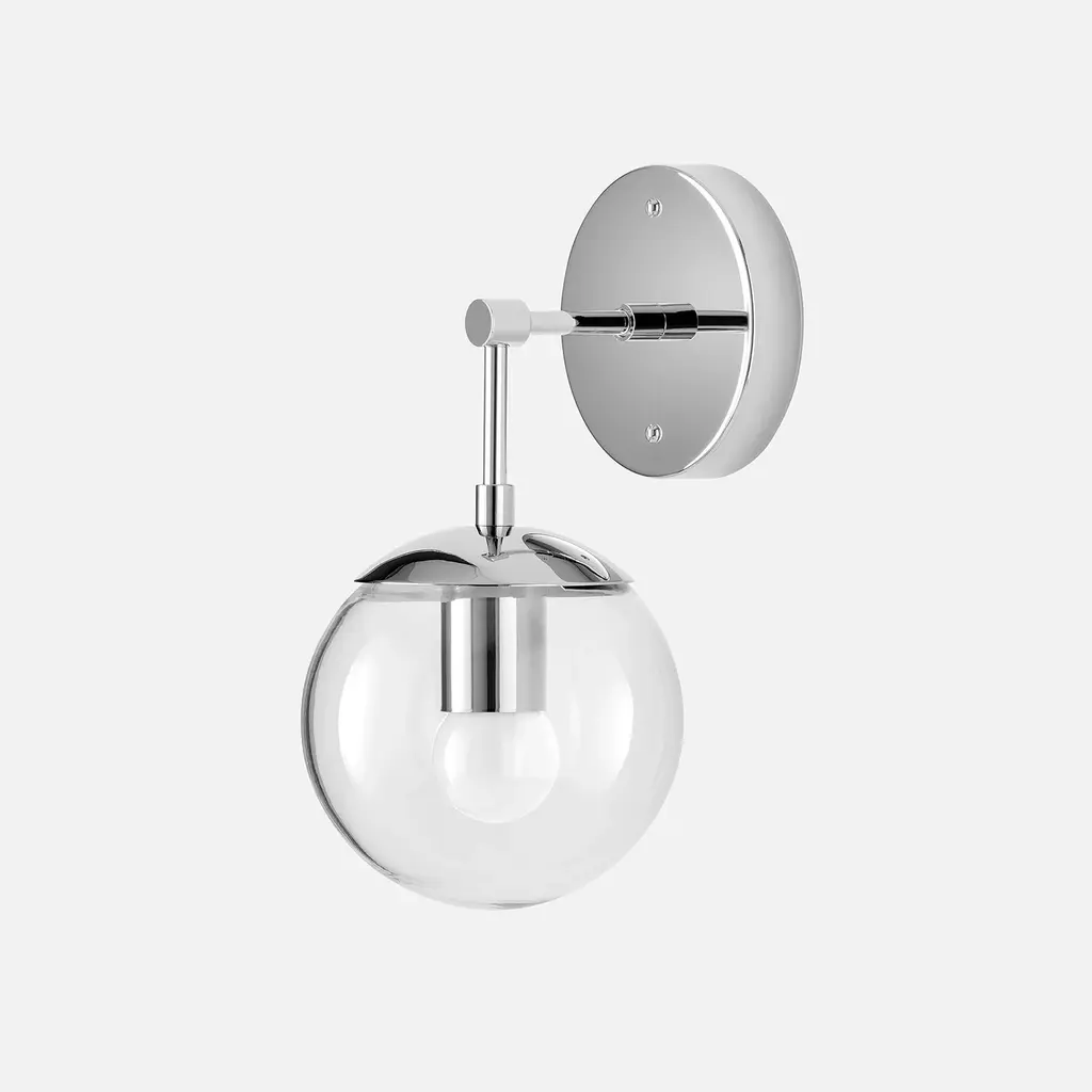 The Nova L Sconce flashes starry brilliance in any space it’s seen in. Its orb-like shade and slender L-rod silhouette nods to the geometric tendencies of mid-century modern design, but the Nova also blends into a variety of more traditional rooms due to its craftsmanship and quality of light. Choose between opal and clear glass shades and among four elegant paint or patina options. Assembled in our Portland, Ore. factory using ethically-sourced domestic and global components. A Schoolhouse Original. Learn how to choose perfect wall sconce placement on our blog.