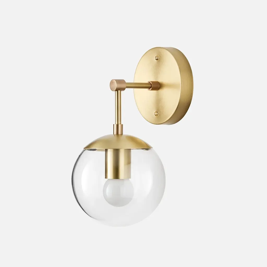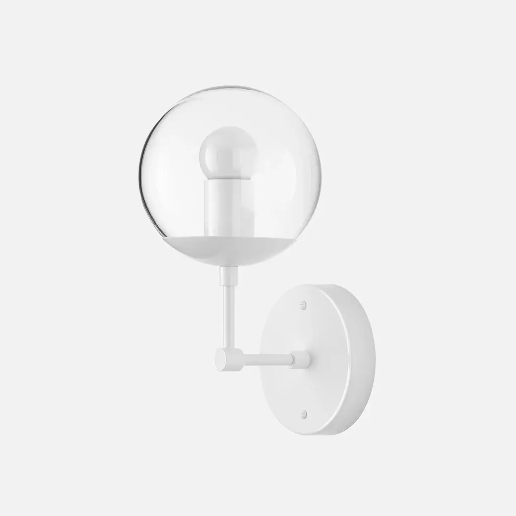 The Nova L Sconce flashes starry brilliance in any space it’s seen in. Its orb-like shade and slender L-rod silhouette nods to the geometric tendencies of mid-century modern design, but the Nova also blends into a variety of more traditional rooms due to its craftsmanship and quality of light. Choose between opal and clear glass shades and among four elegant paint or patina options. Assembled in our Portland, Ore. factory using ethically-sourced domestic and global components. A Schoolhouse Original. Learn how to choose perfect wall sconce placement on our blog.