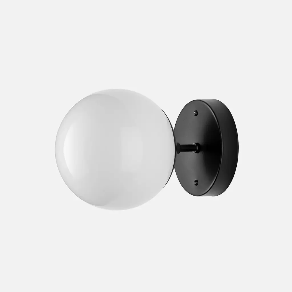 The Nova Sconce flashes starry brilliance in any space it’s seen in. Its orb-like shade nods to the geometric tendencies of mid-century modern design, but the Nova also blends into a variety of more traditional rooms due to its craftsmanship and quality of light. Comes with an opal glass shade and your choice of four elegant paint or patina options. Assembled in our Portland, Ore. factory using ethically-sourced domestic and global components. A Schoolhouse Original. Learn how to choose perfect wall sconce placement on our blog.